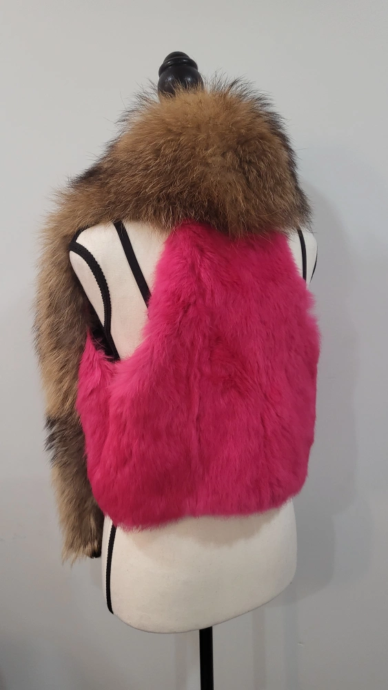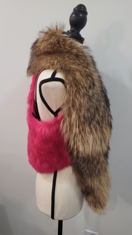 beautiful natural Fox fur collar with pink rabbit fur (minimum-non shedding) size xs-s