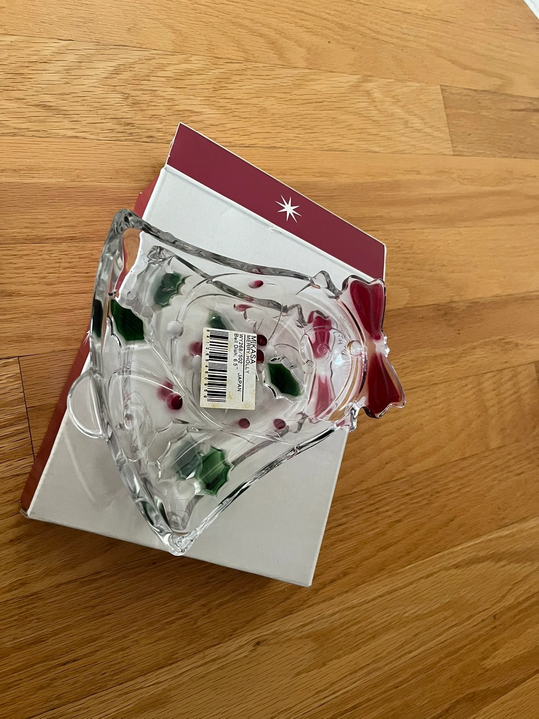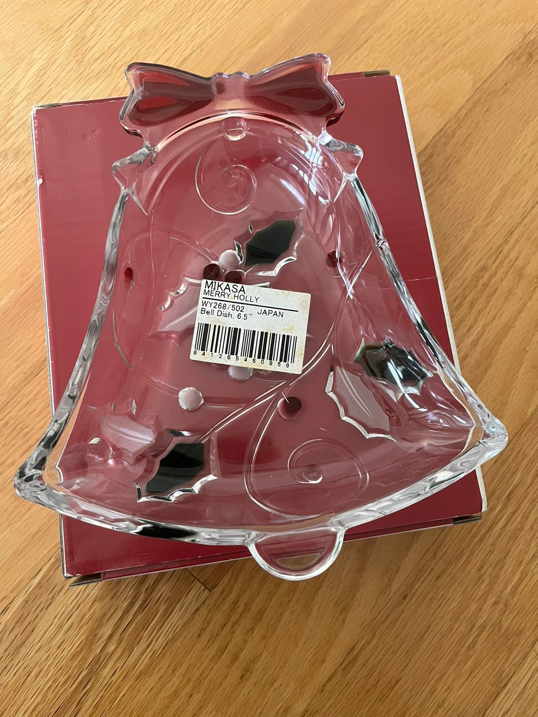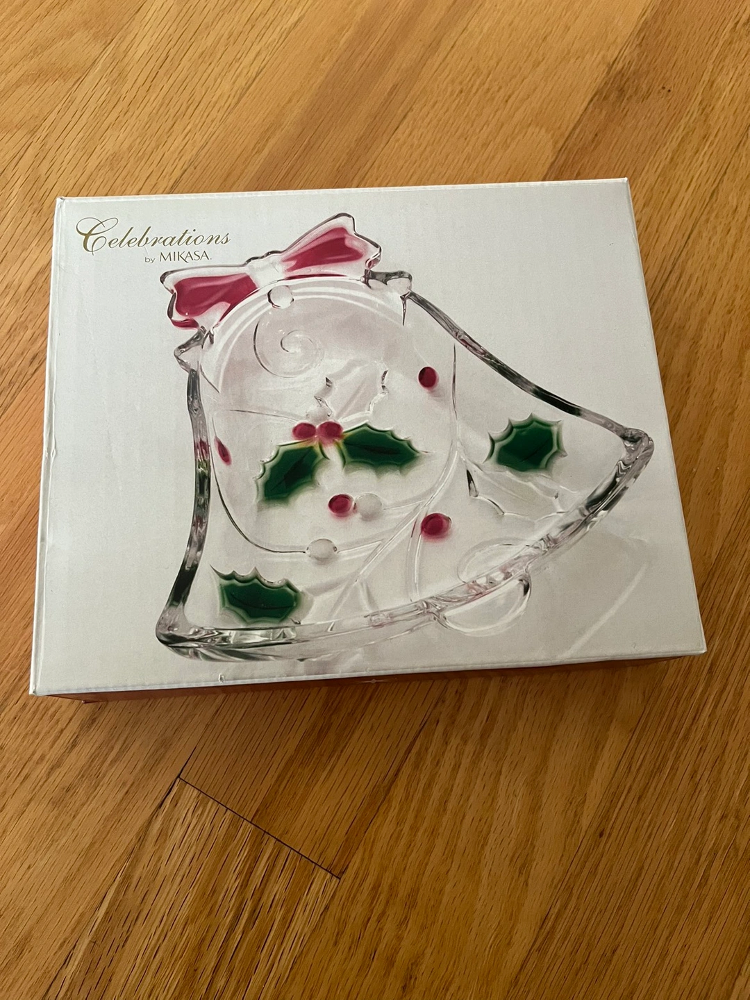 MIKASA Celebrations Bell Shaped Candy Dish brand new in Box Merry Holly WY 268/502 Made in Japan