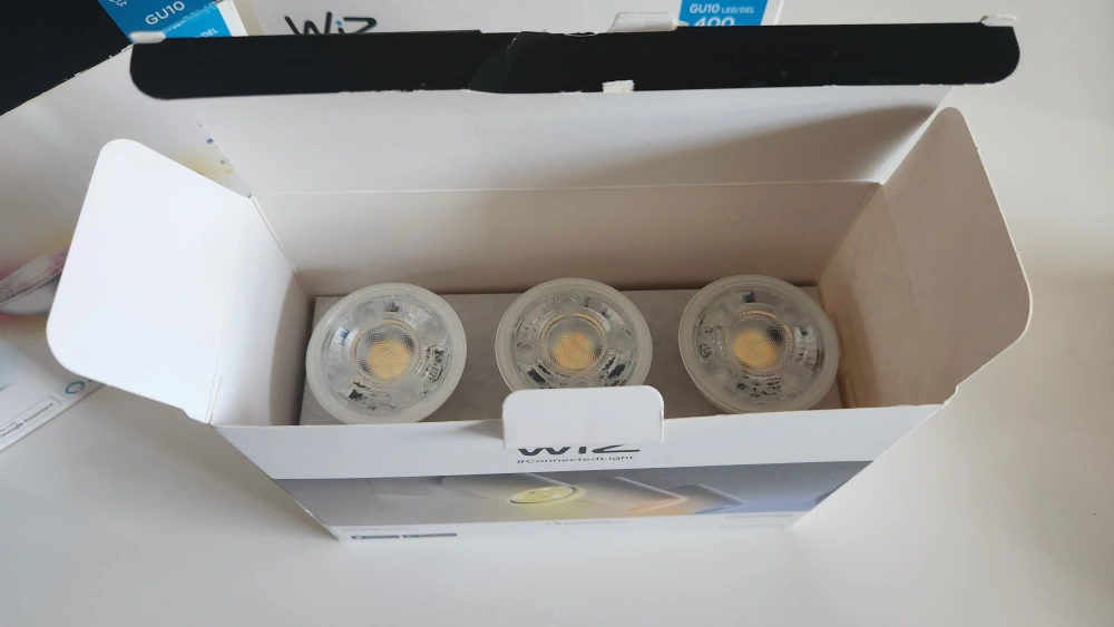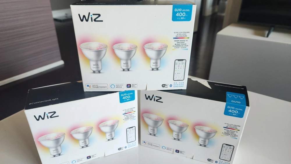 Philips WiZ GU10 Smart Bulbs I have three boxes with three bulbs in each box. Great condition and used for about 8 months. Asking $35 for one box or take all three boxes for $90. Regular price is $44.97 ($50.82 after tax) for one box. https://a.co/d/fMDDlvi