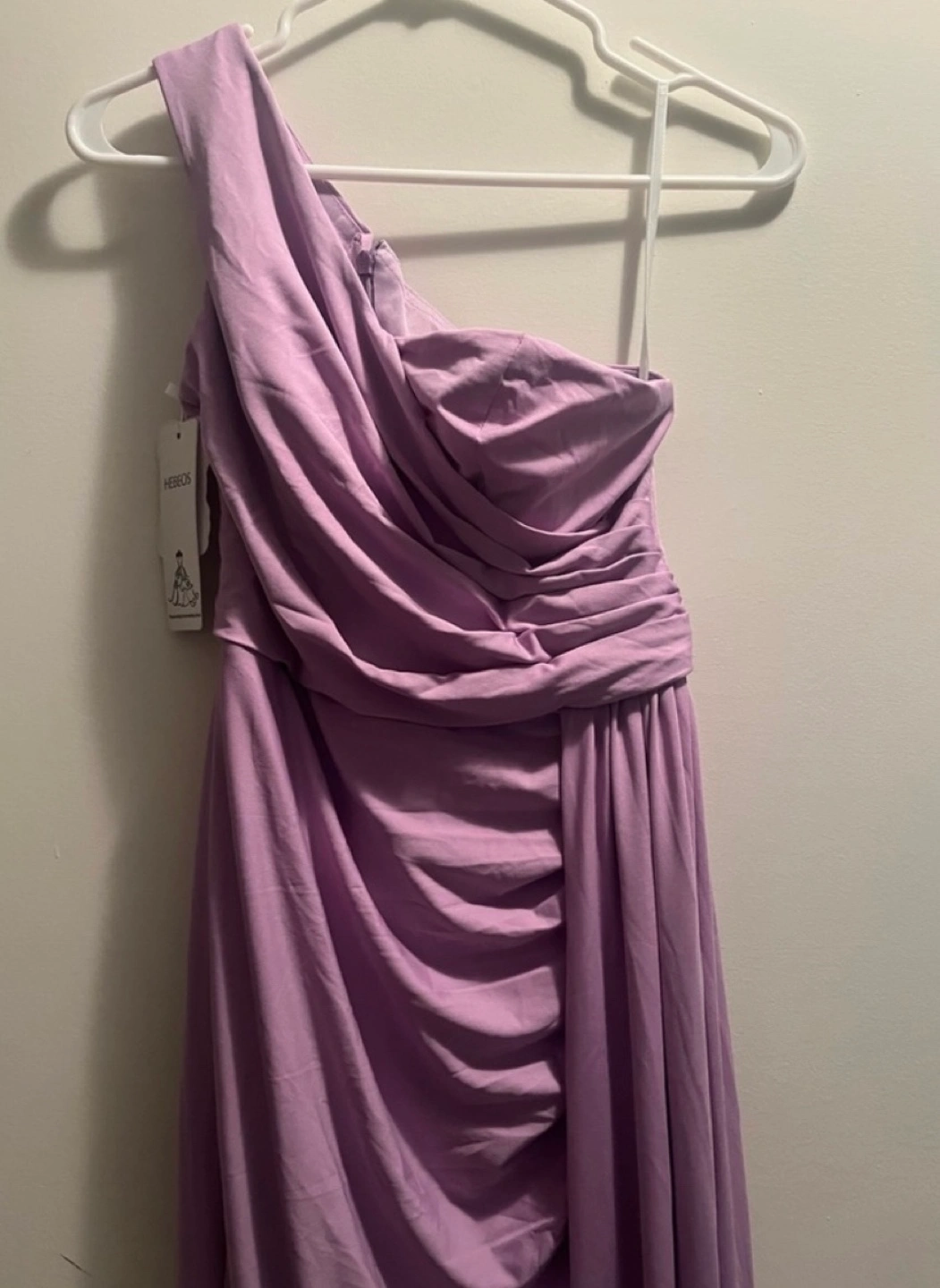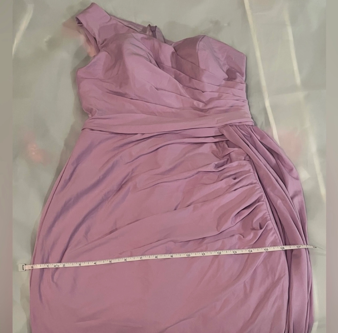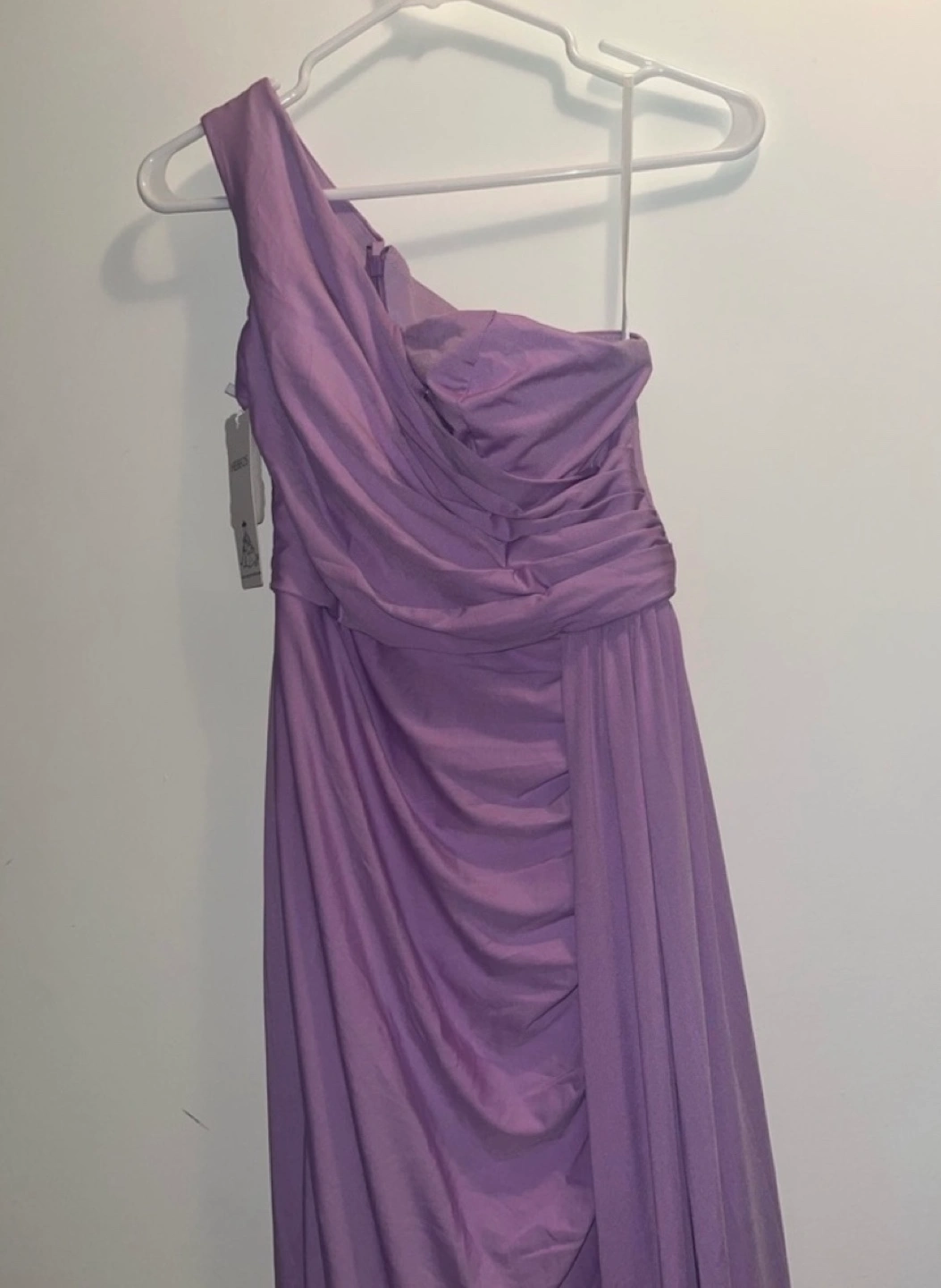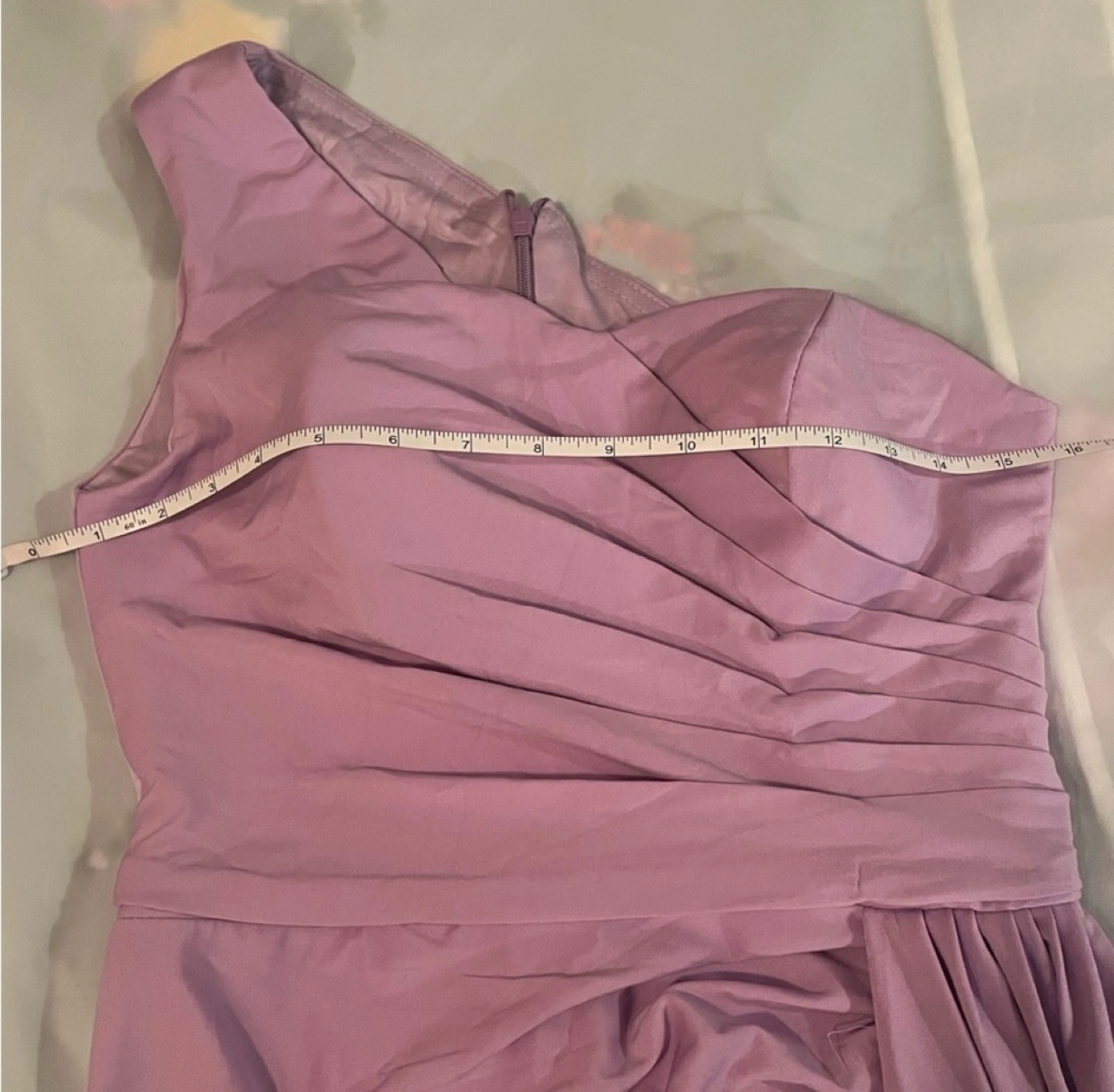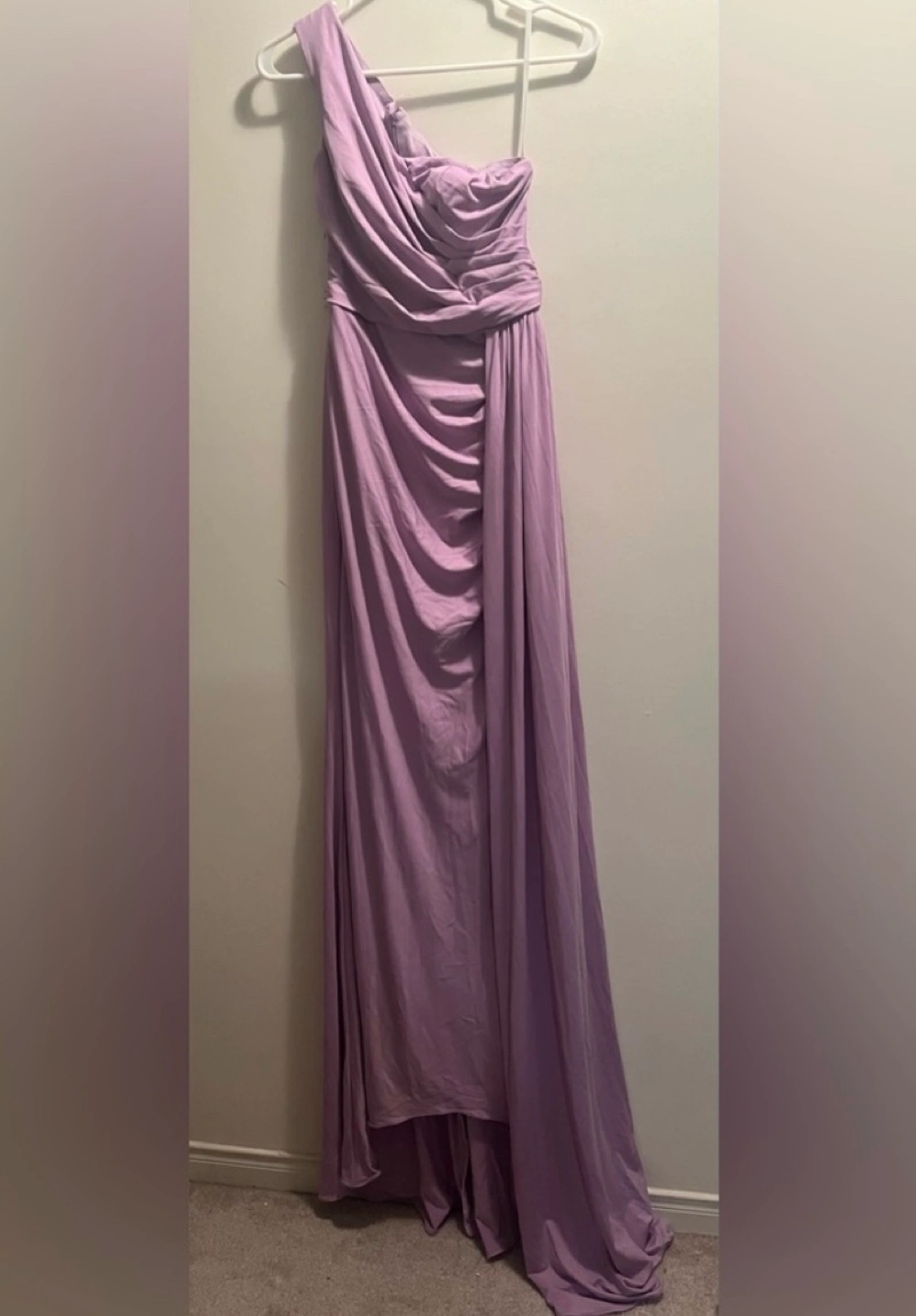 Brand new with tags Pickup Brampton or downtown Toronto Model is wearing more blueish tone but dress is more lilac purple The measurements are given to make it easier to understand the sizing Modern + minimal with the perfect dose of sexy, this bridesmaid dress features a body-skimming fit and one shoulder neckline. It's designed in a comfy stretch knit crepe with a long sash. We can't say this about all bridesmaid dresses, but it's definitely one you can rock again long after the wedding.