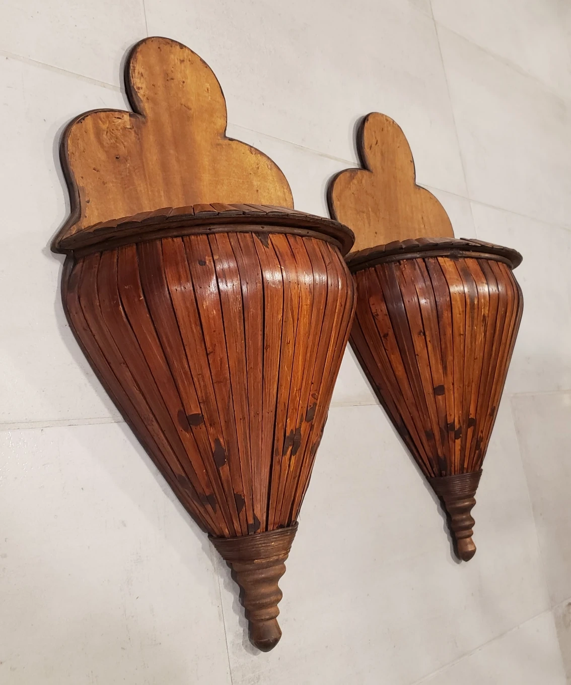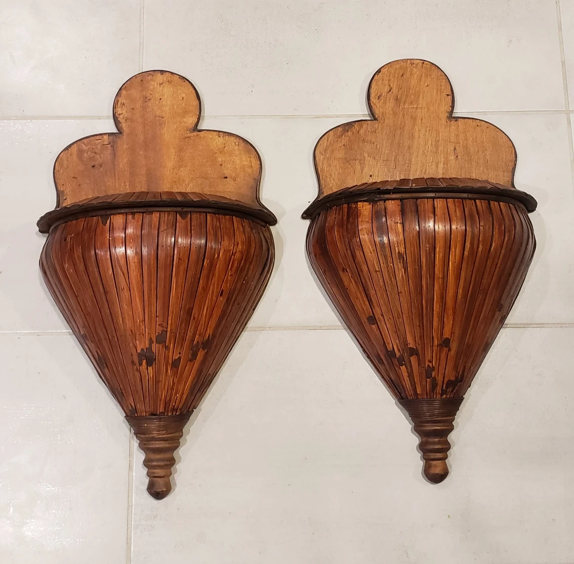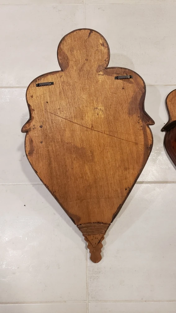 beautiful wood wall mount planters wall pockets. both have 2 hangers on the back of each.