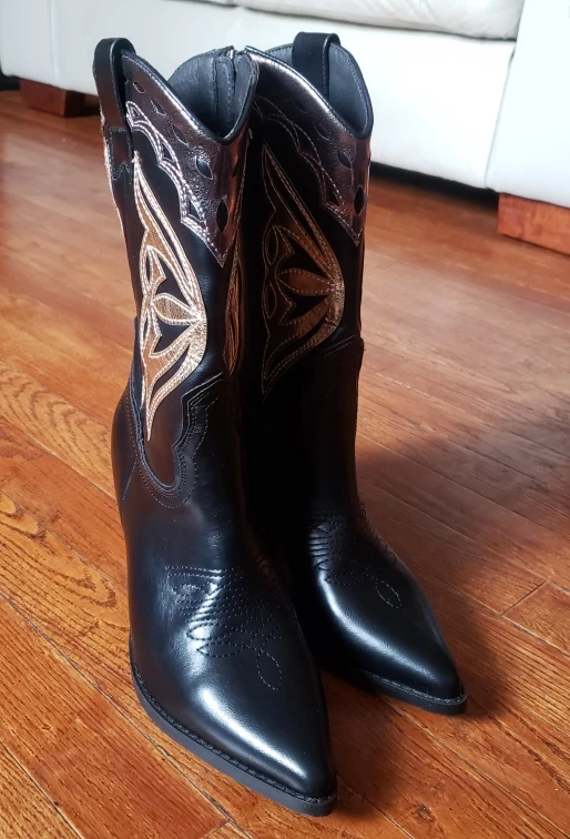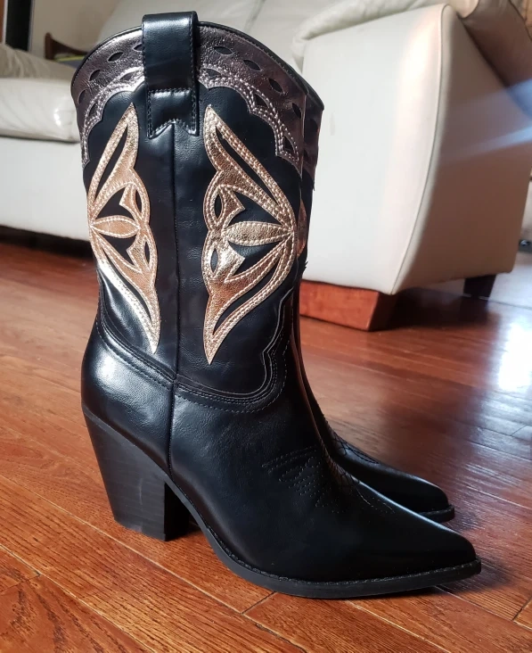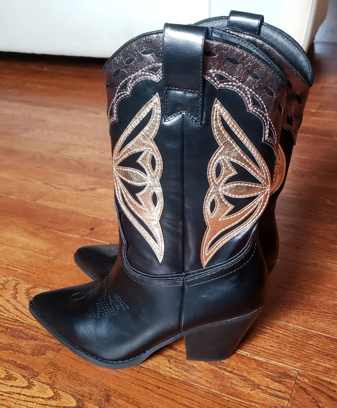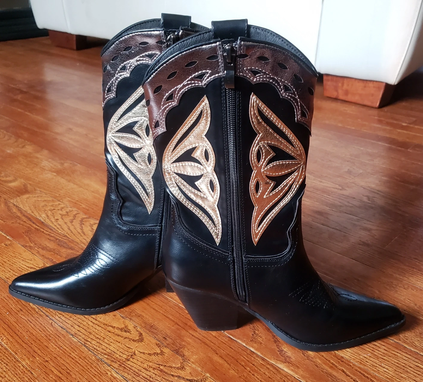 Ladies NWOT black cowboy boots. fits true to size.They have a nice gold/champagne butterfly design