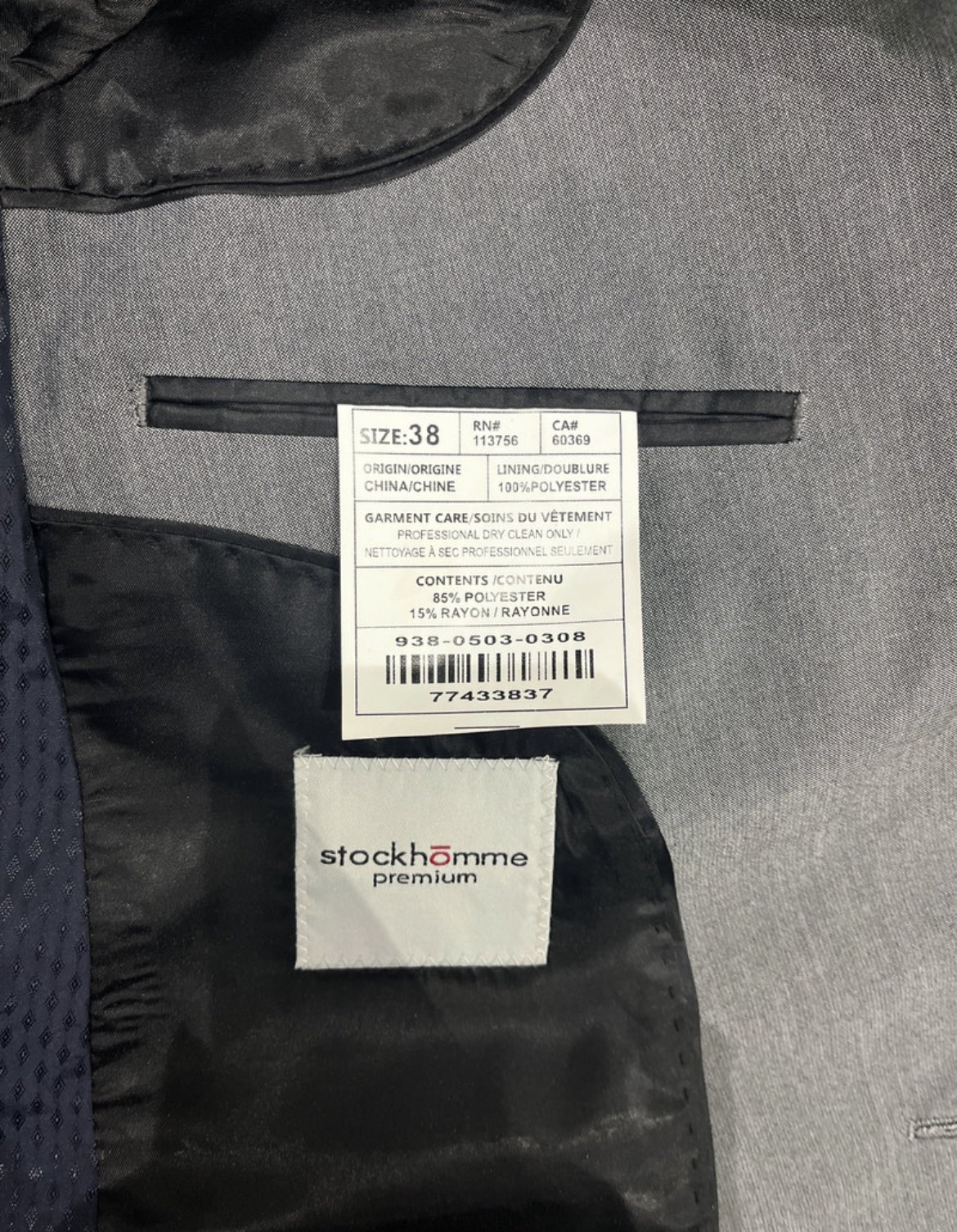 Grey suit Wore twice Does not fit anymore Stockhomme Blazer: Size 38 Pants: size 34 Please look at pictures for more info :) I don’t have a place to try on so please see size tags