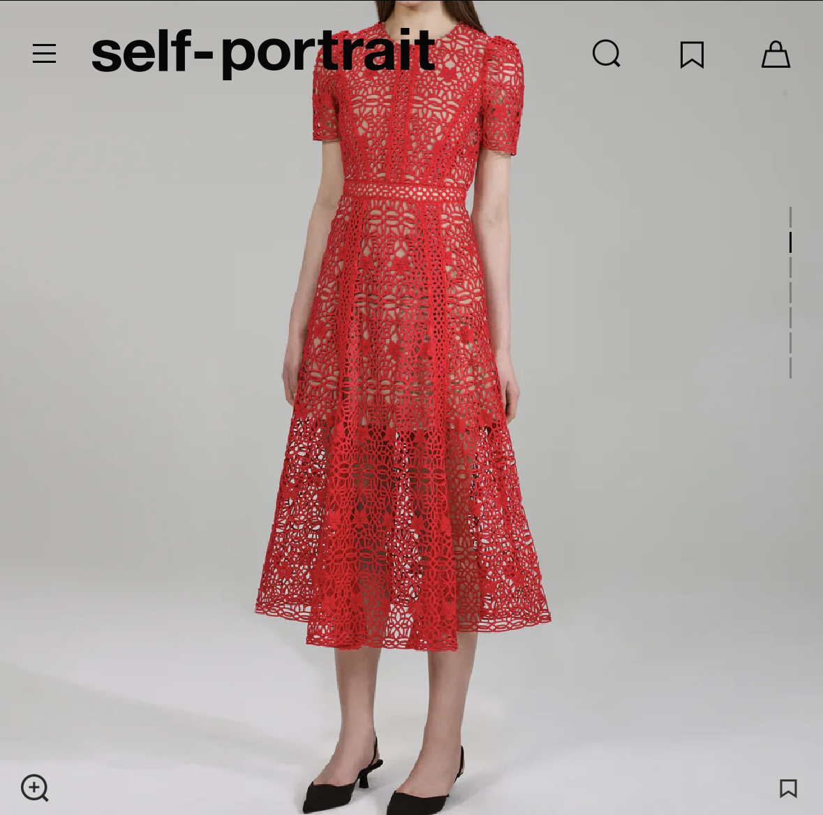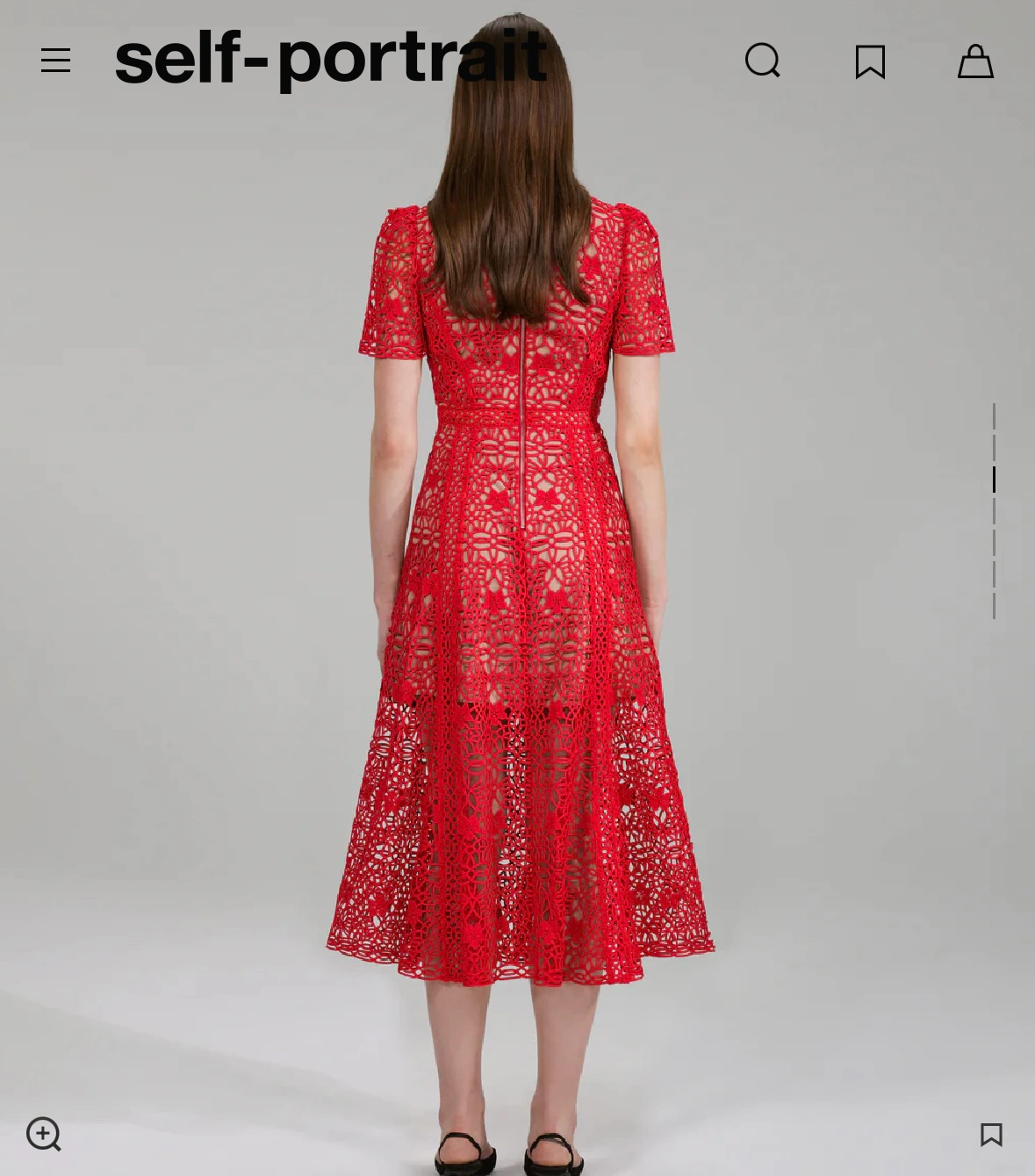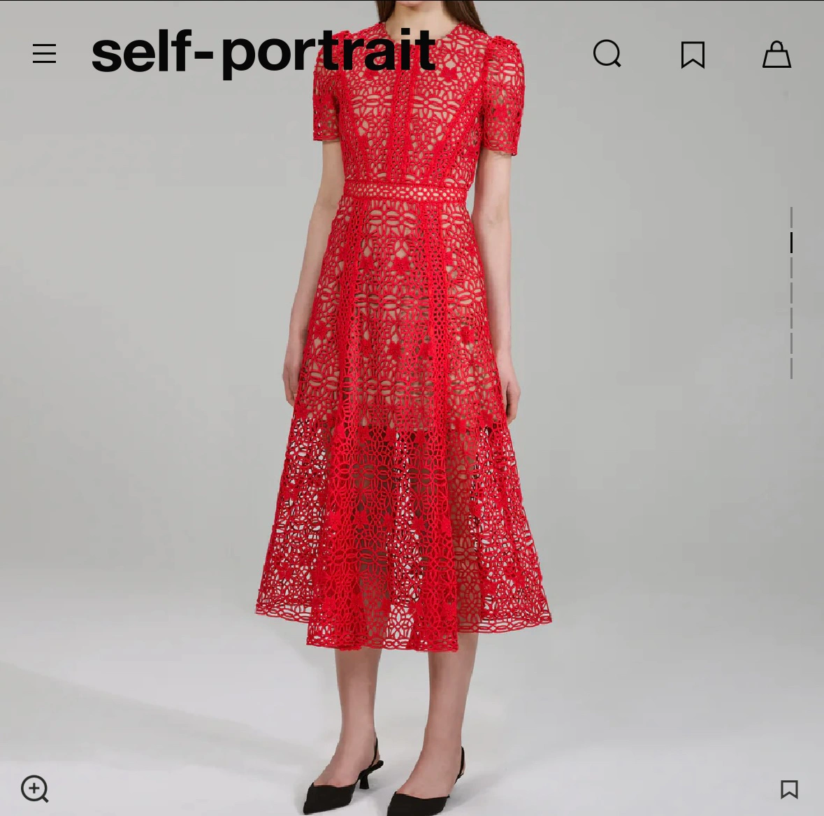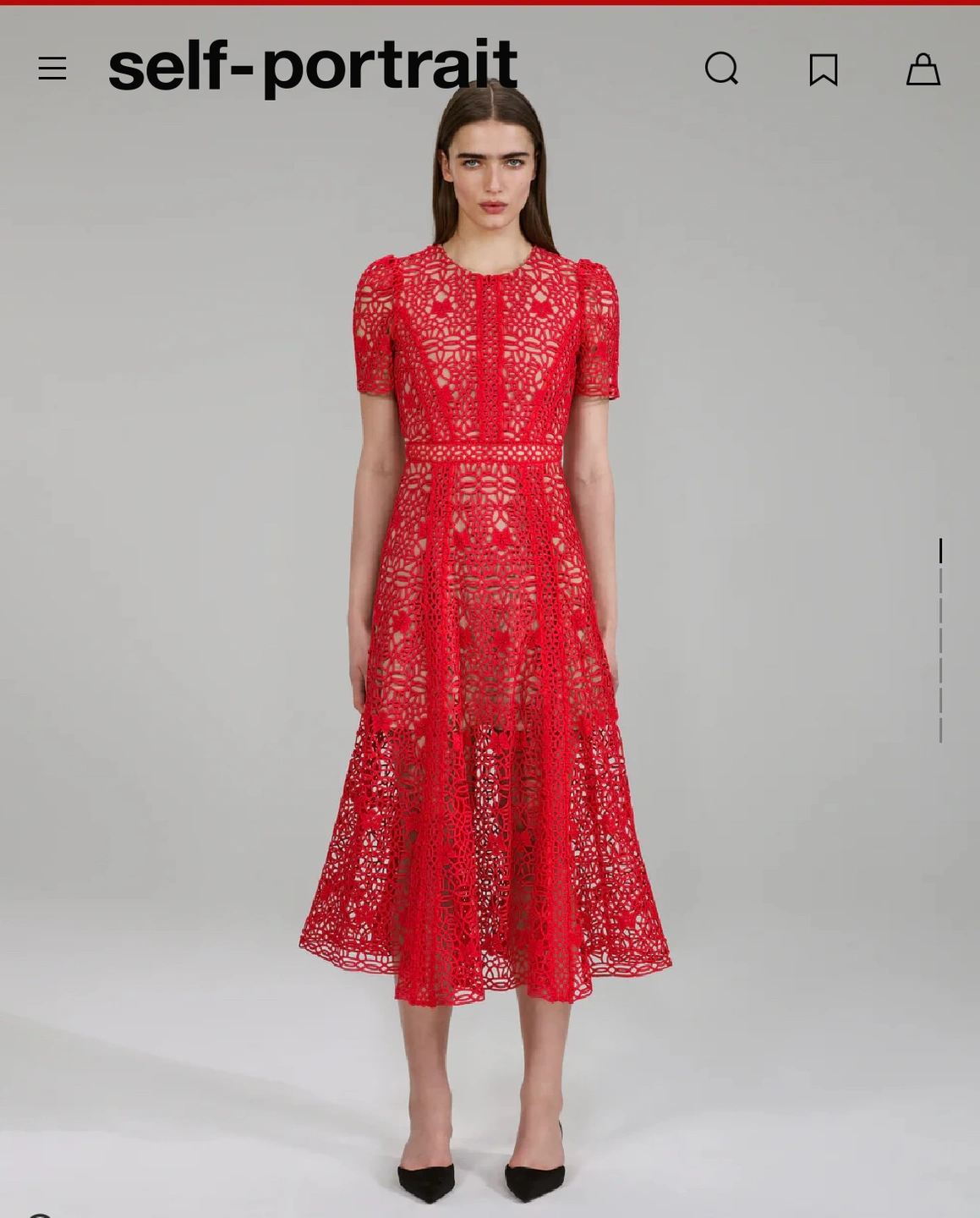 Brand new with tags- never worn Bought the wrong size ——————————————————————— This red midi dress is cut from guipure lace in airy design with a nude-colour lining for coverage. Designed with short puff sleeves and a fitted waist that falls to a flared midi skirt. Roundneck Short puff sleeves Concealed back zipper closure Fitted waist 100% polyester Lined Dry clean Imported SIZE & FIT Fit-and-flare silhouette Midi length About 51" from shoulder to hem SIZE DESCRIPTION Bust: 31" - 31.5" Natural waist: 23" - 24" Low waist: 23" - 24" Hips: 34"