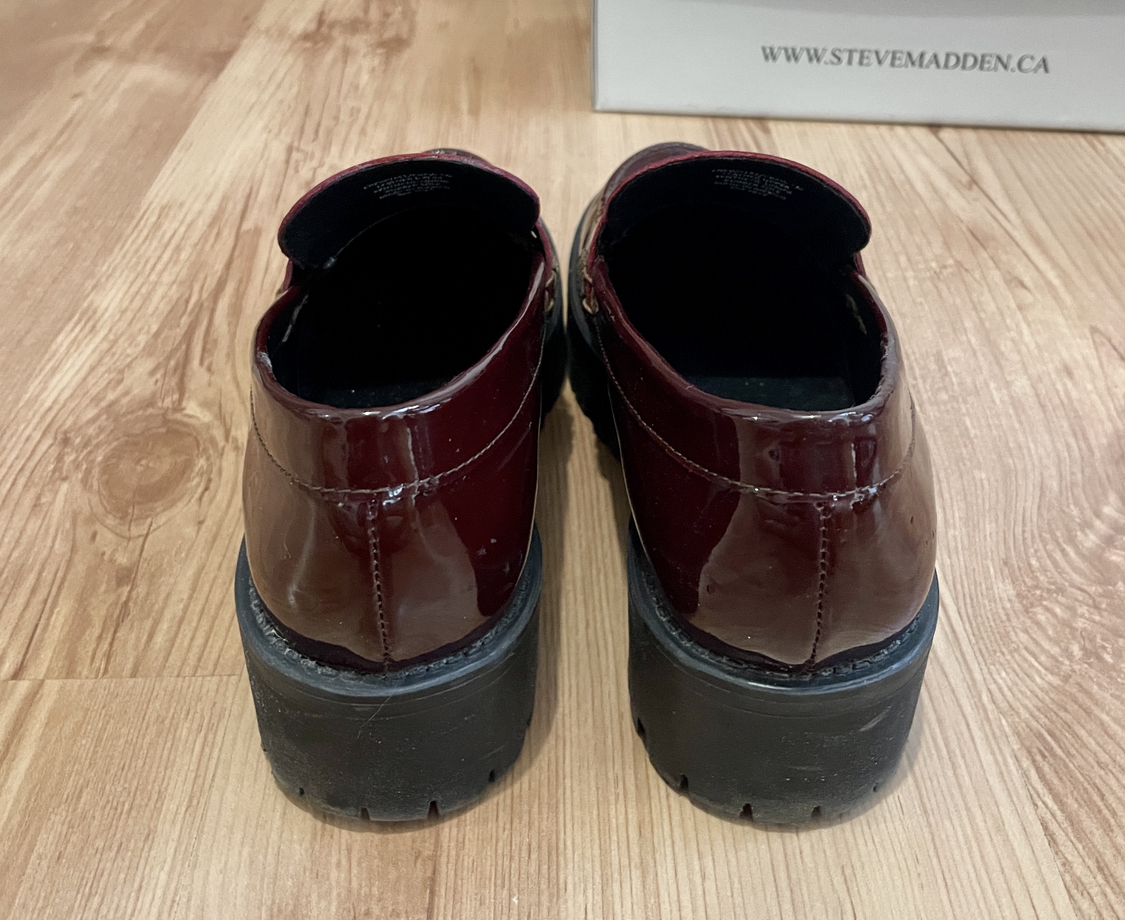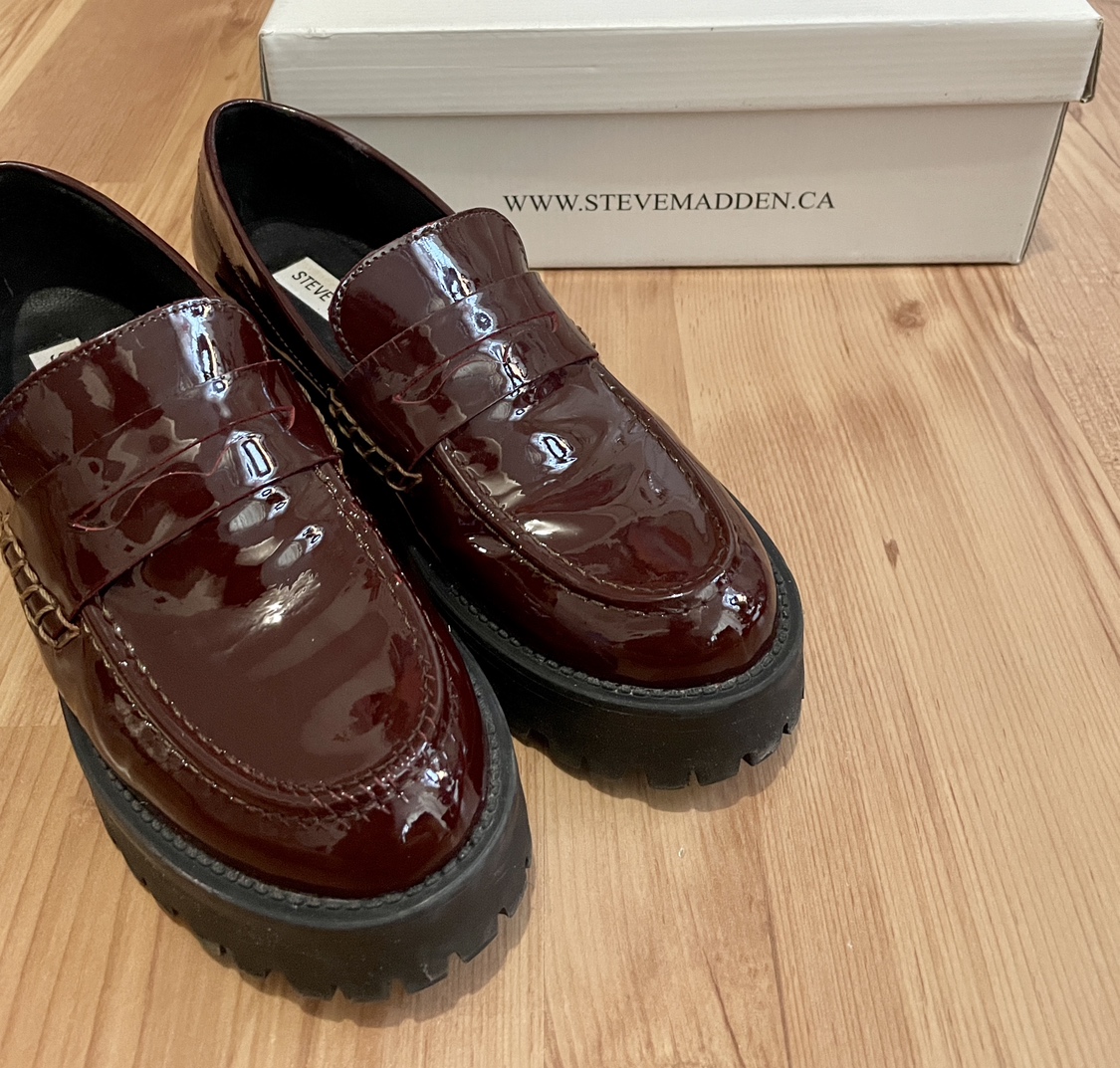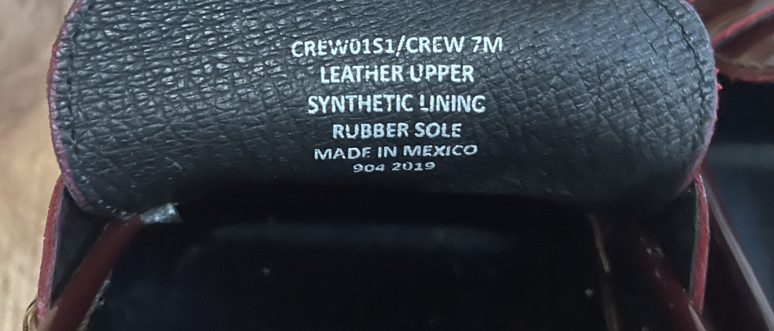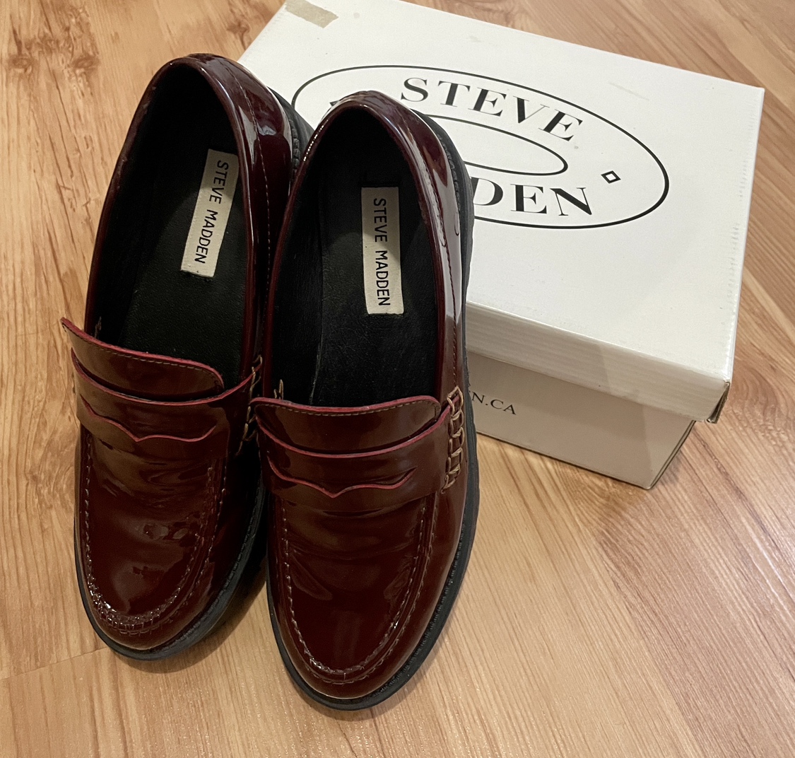 leather upper / synthetic lining / rubber sole im 6.5 but it fits great (i think their sizing seem different) i wore 3-4 times, it’s in mint condition! cute burgundy loafer