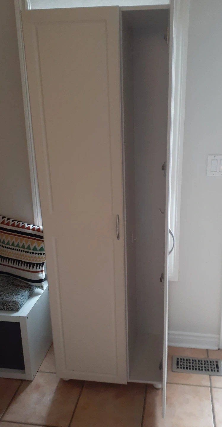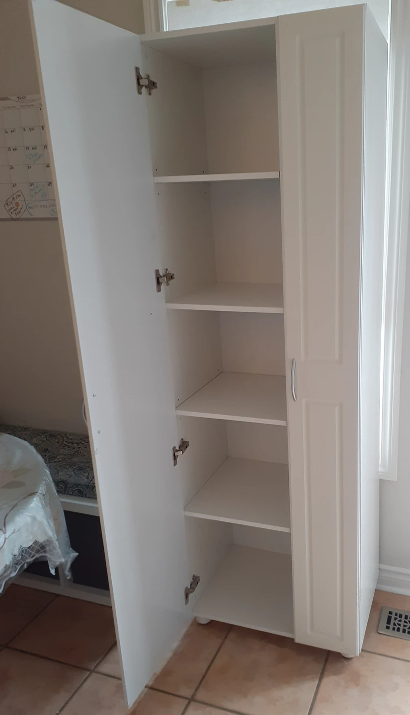 Description Kitchen storage cabinet. Excellent used condition... Dimensions are: 185 cm tall, 60 cm wide, 42.5 cm depth. Bought at Canadian Tire 2 years ago. Currently they sell it for $240 ...my price $130