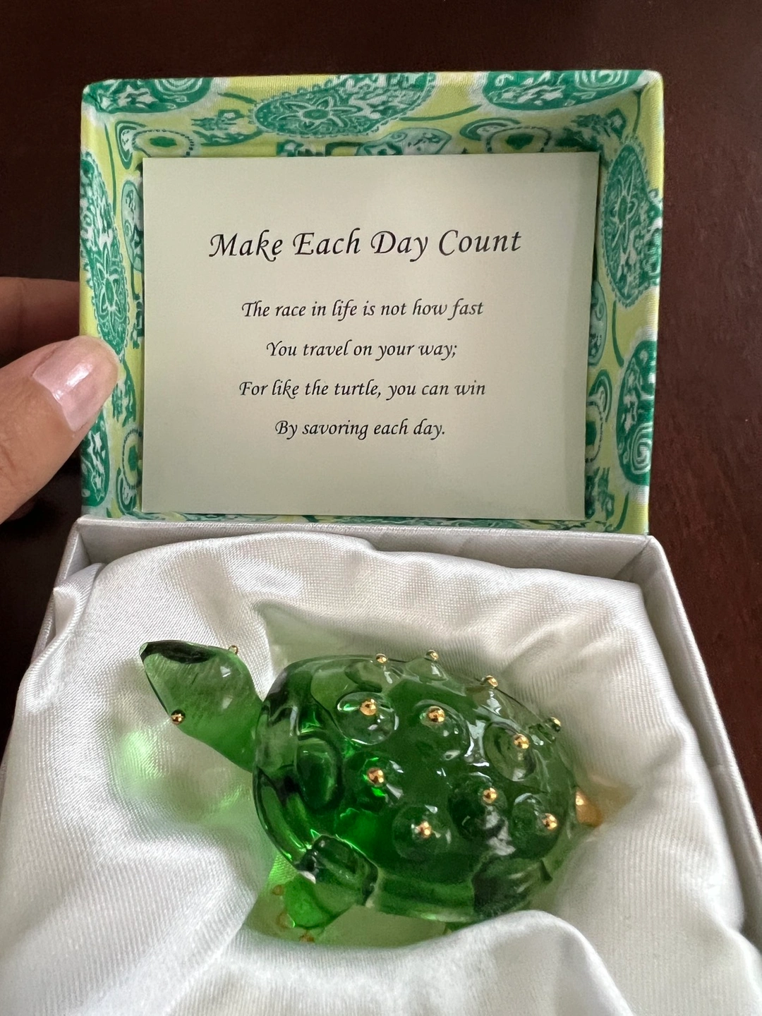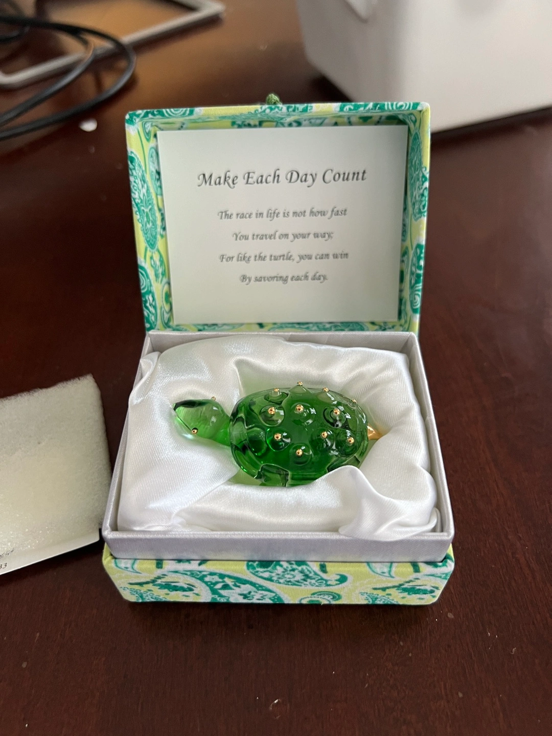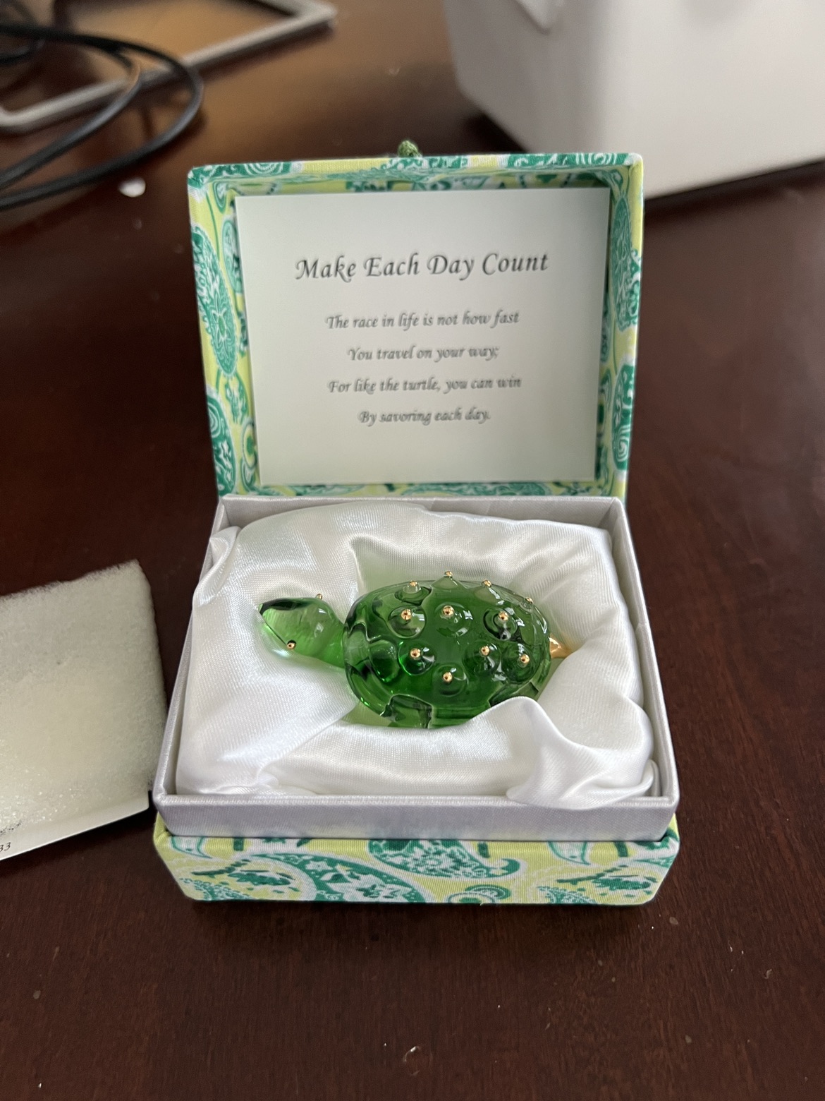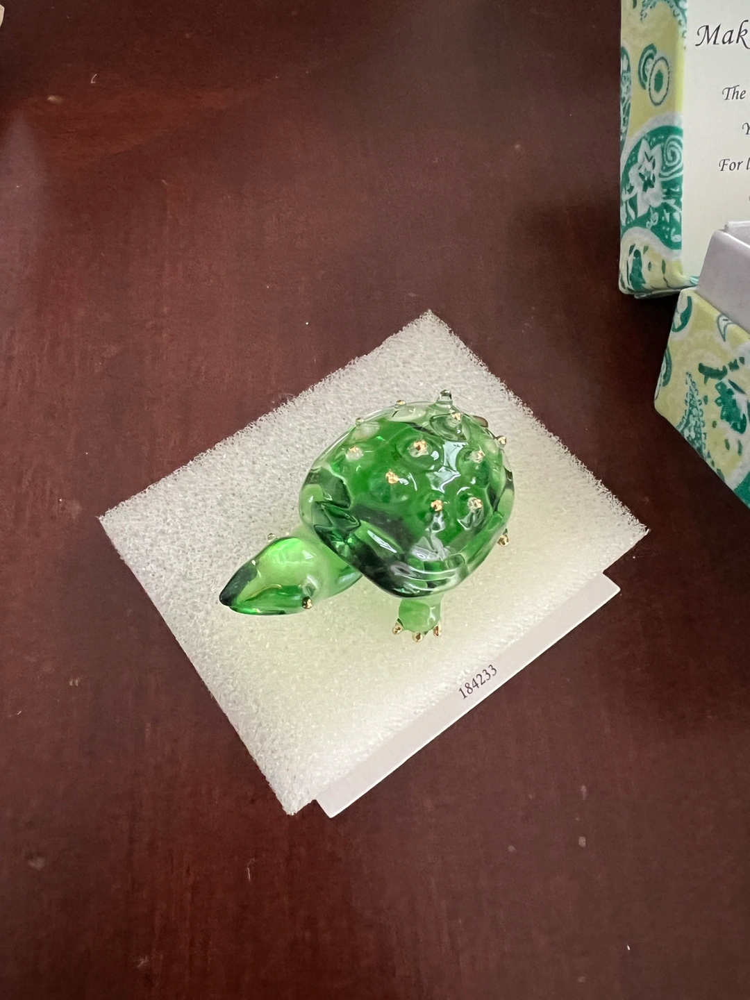 Green ornamental turtle - highly detailed and well crafted. Sitting in its cushioned box. Paid $25+ tax for it