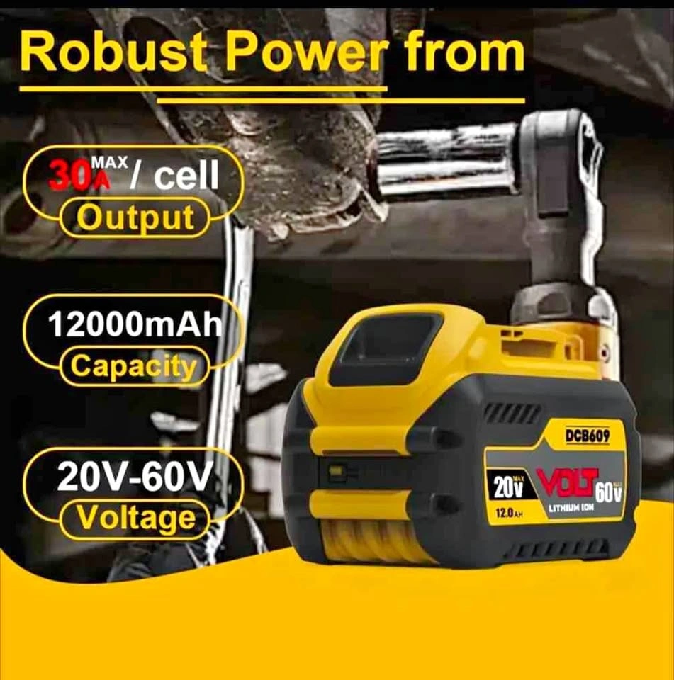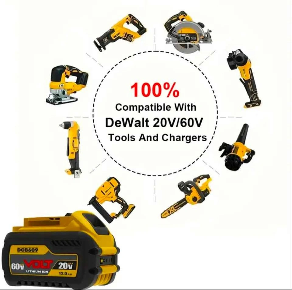 PRICE REDUCED TO CLEAR OUT! Power Up Your 20v and/or 60v Dewalt Tools with this High-Capacity, pocket friendly, Replacement Battery. Stop running out of juice! • Massive 12.0Ah Capacity: Tackle bigger projects with extended runtime. • Long-lasting power! Replacement battery (Model DCB609 equivalent). • 100% Compatible: Works seamlessly with your 20v and 60V DeWalt tools and chargers, including DCB118, DCB104, DCB103, DCB115, DCB112, DCB119, DCB101, and DCB107. • Reliable Performance: Keep your workflow going strong. • Perfect as a replacement or an extra battery to keep you working! Pickup at Wyandotte & McKay Avenue