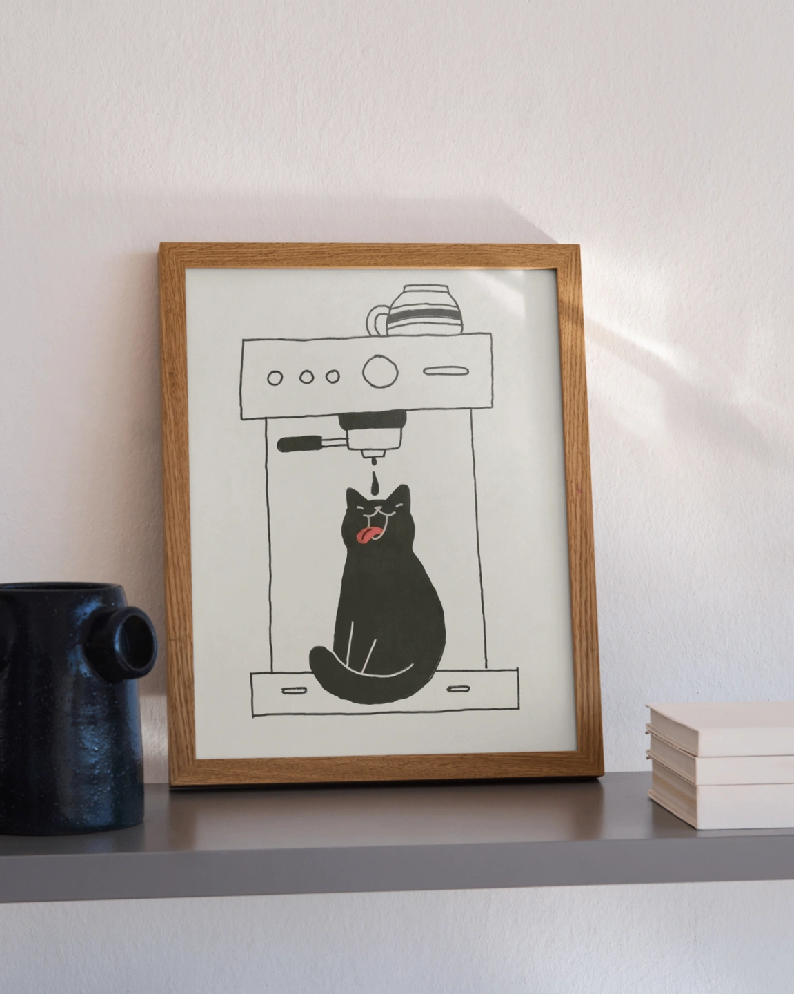 Size : 12x16" Frame: Oak, Birch, Black or White This adorable framed art print features a coffee-loving cat who just can’t get enough espresso! Perfect for kitchens, coffee nooks, or any space that needs a playful vibe. ✨ Ready to hang brand new frame ✨ Makes a purr-fect gift for cat or coffee lovers 📍 Pick up in Kitsilano Check out my profile for more unique framed
