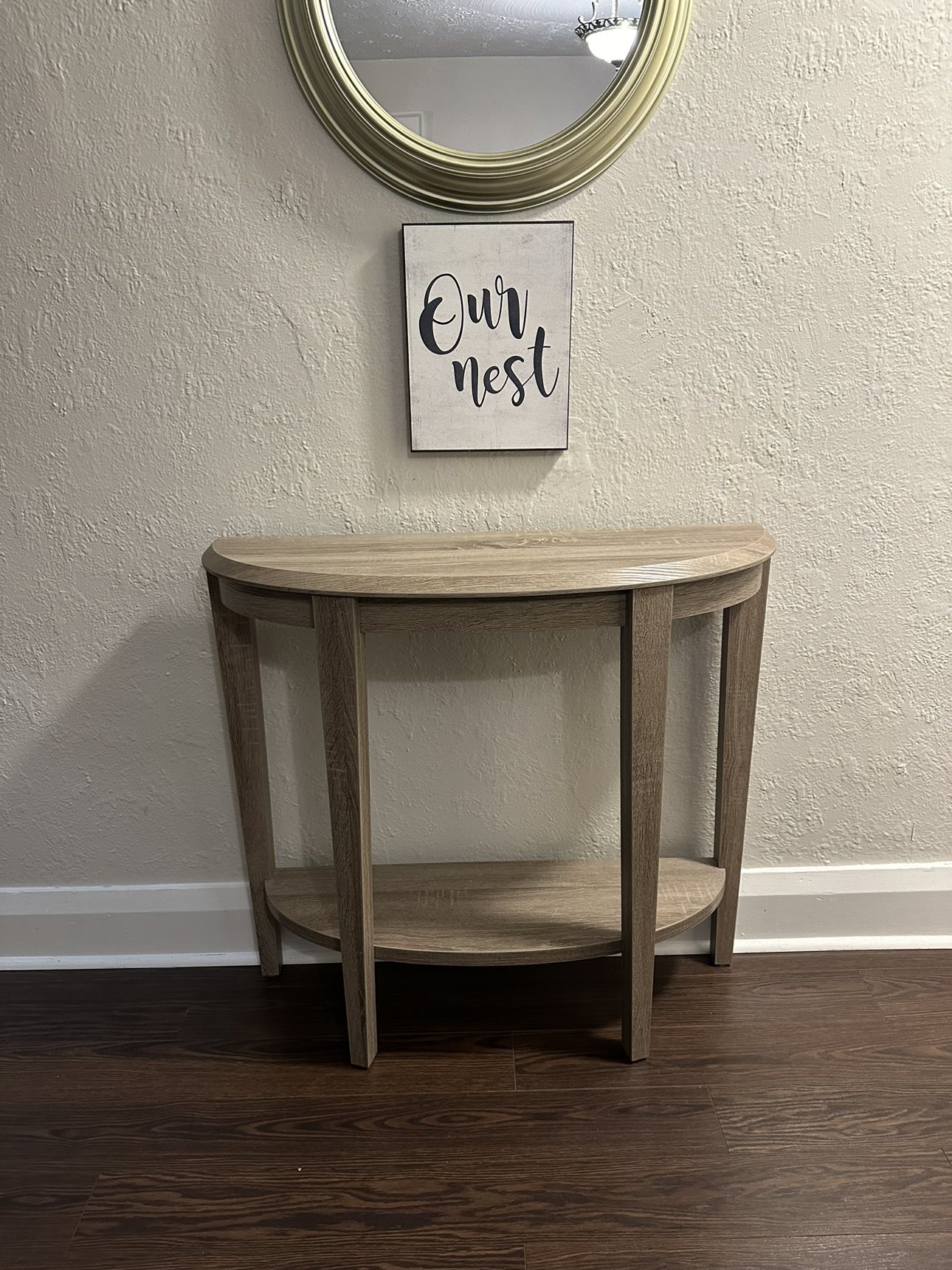 Round Wood Table With Partition.