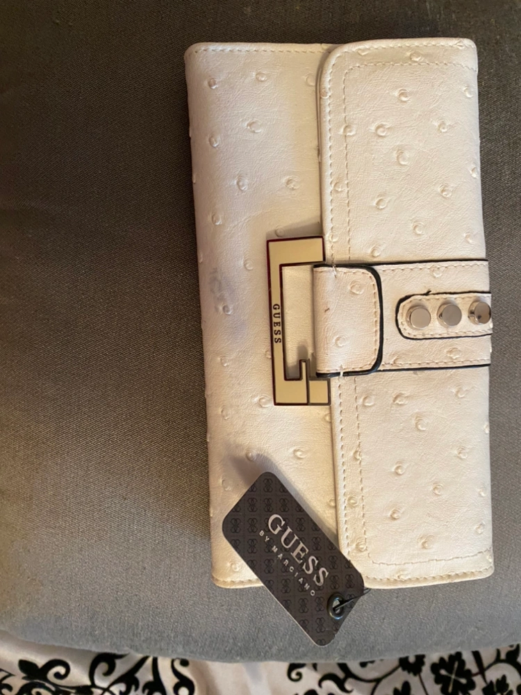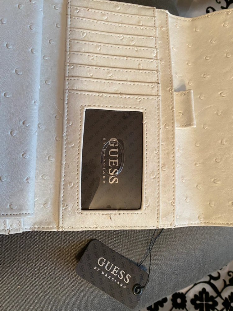 Brand new Guess Wallet with multiple card slots, pen holder and different areas that can be used for storing bills and receipts. Selling at this low price due to a small mark as in photos. Hardly noticeable and can be easily removed. This is a high quality item. All tags attached. It’s a great wallet/0rganizer. Downsizing