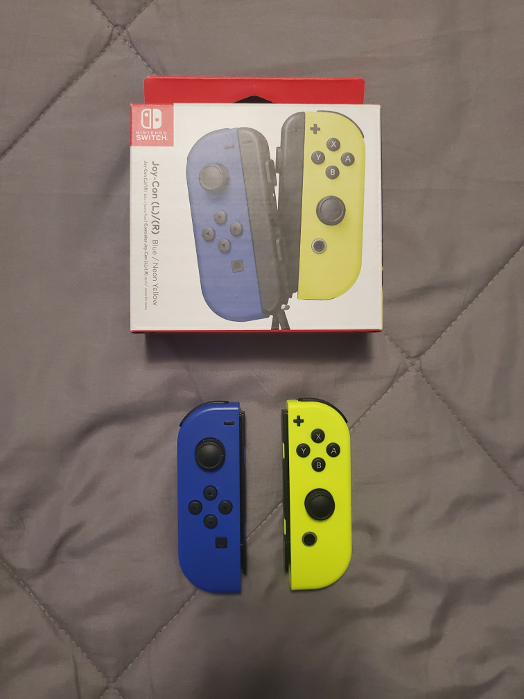 Selling a pair of Nintendo Switch Joy-Cons. - Neon Yellow and Blue colour - Great condition - Comes with original packaging