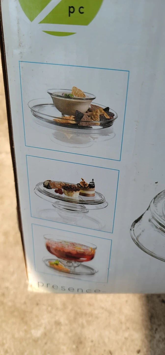 Cleaning out my garage today so will be posting alot of stuff. Might be dusty but will clean everything before trade. Used only once for a party only. Box is not at the best condition but the stand itself is like new! Can be used as a cake stand, chip and dip, serving platter and punch bowl. See picture for more detail