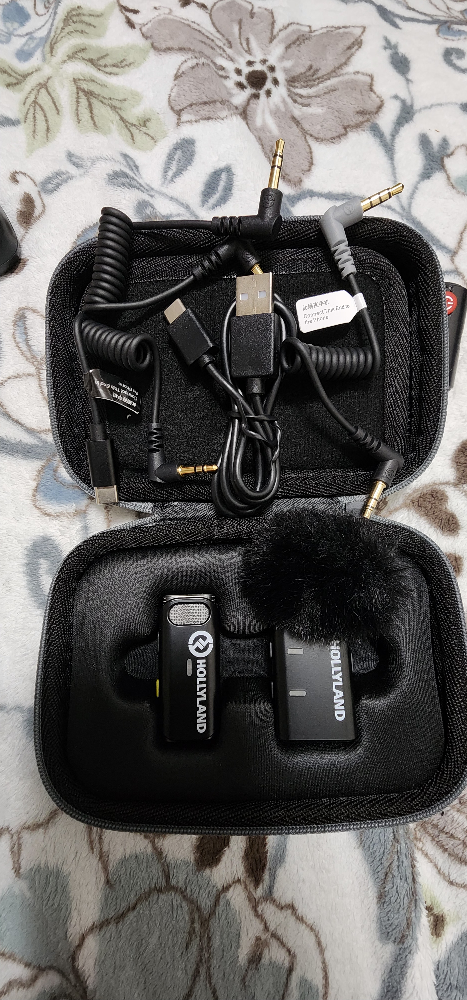 Hollyland Lark M1 Wireless Lavalier Microphone Compatible with iPhone Android Camera, 656ft 8h Noise Reduction Lapel Mic for Interview Live Stream Video Recording Vlog, 2TX+1RX+Charging, gray pouch.