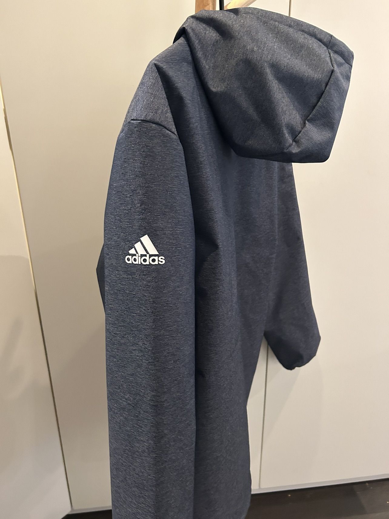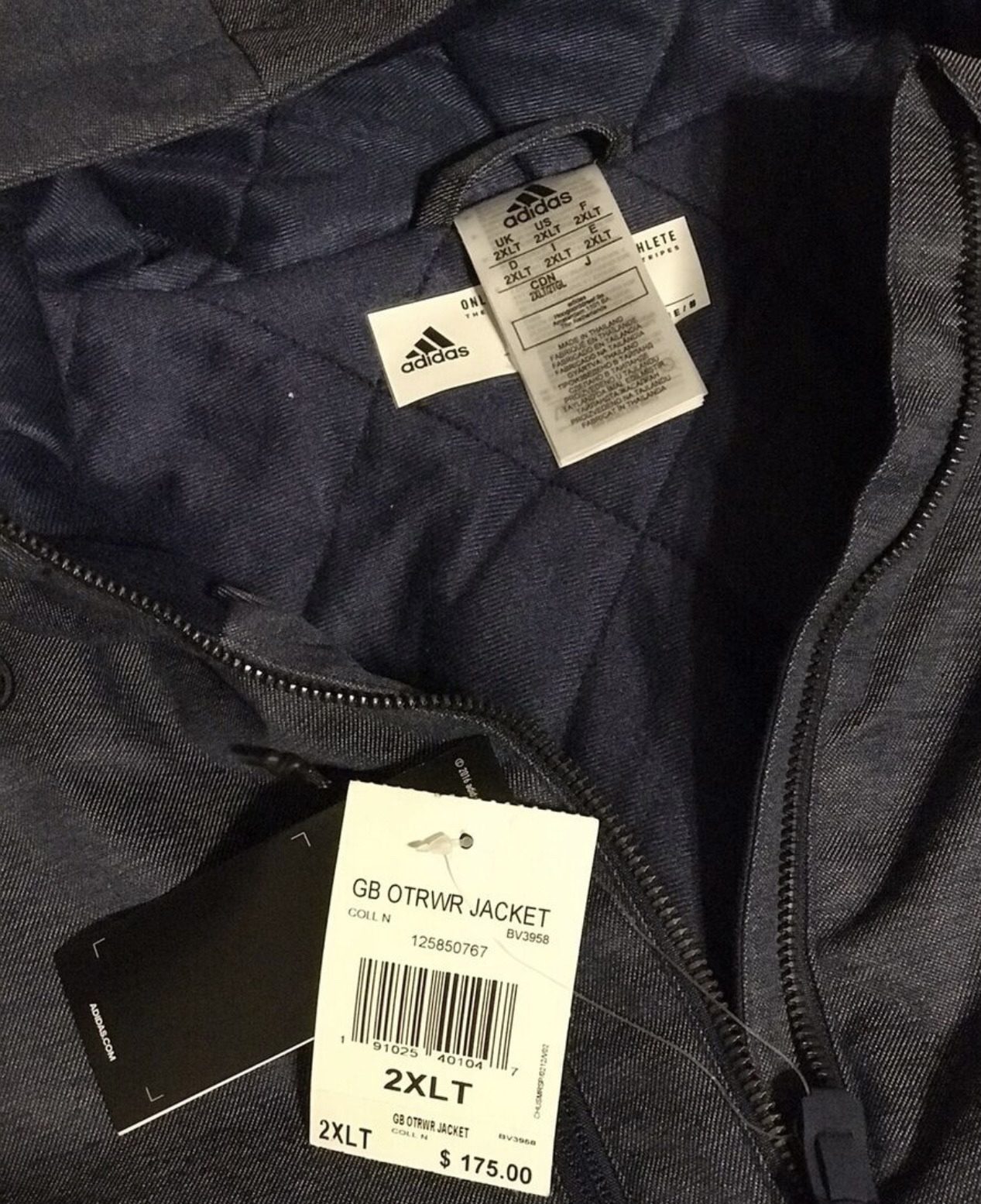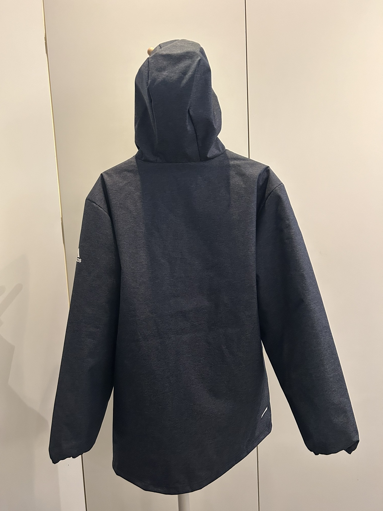 New with tags adidas GB outerwear quilted cozy lined jacket. Brand new. Size small. Several pockets including zip up pockets and interior zip pockets. Hood with drawstrings for warmth. Grey and navy. Very comfy and nice clean look. Never worn. Retails for $179 before tax. Marlee’s logo.