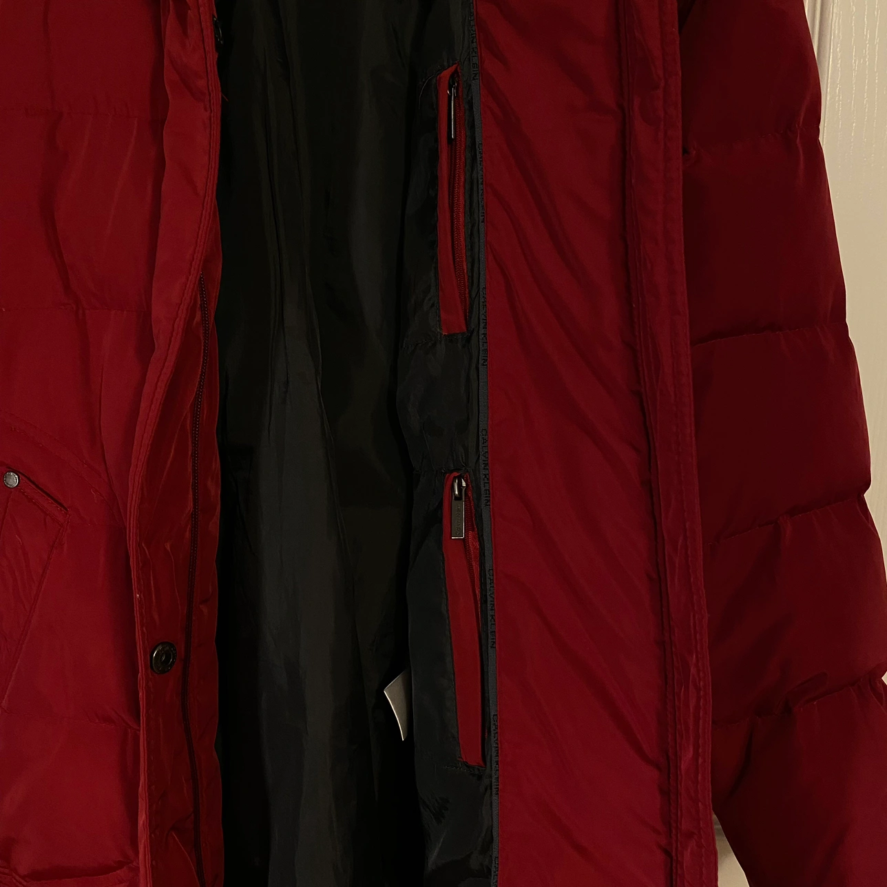 Calvin Klein Puffer Down Coat 🧥removable hood and belt 🧥down and feather 🧥mid-length 🧥front pockets 🧥interior pockets with zipper 🧥very good pre-loved condition 🧥designer button missing on back has been replaced with regular button 🧥small tear near zipper; zipper still works (see picture)