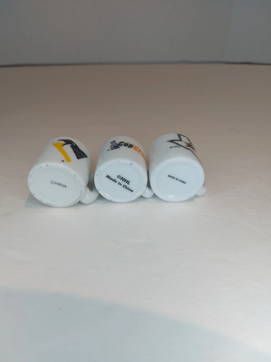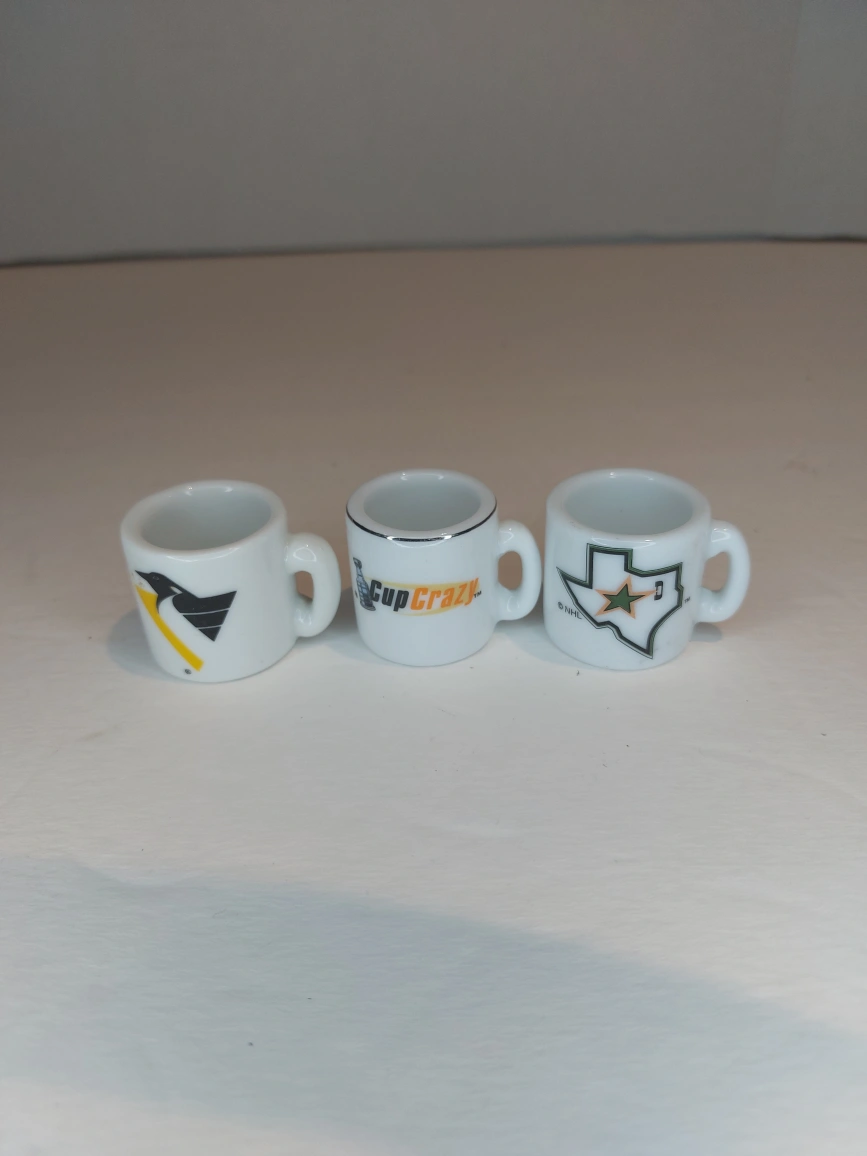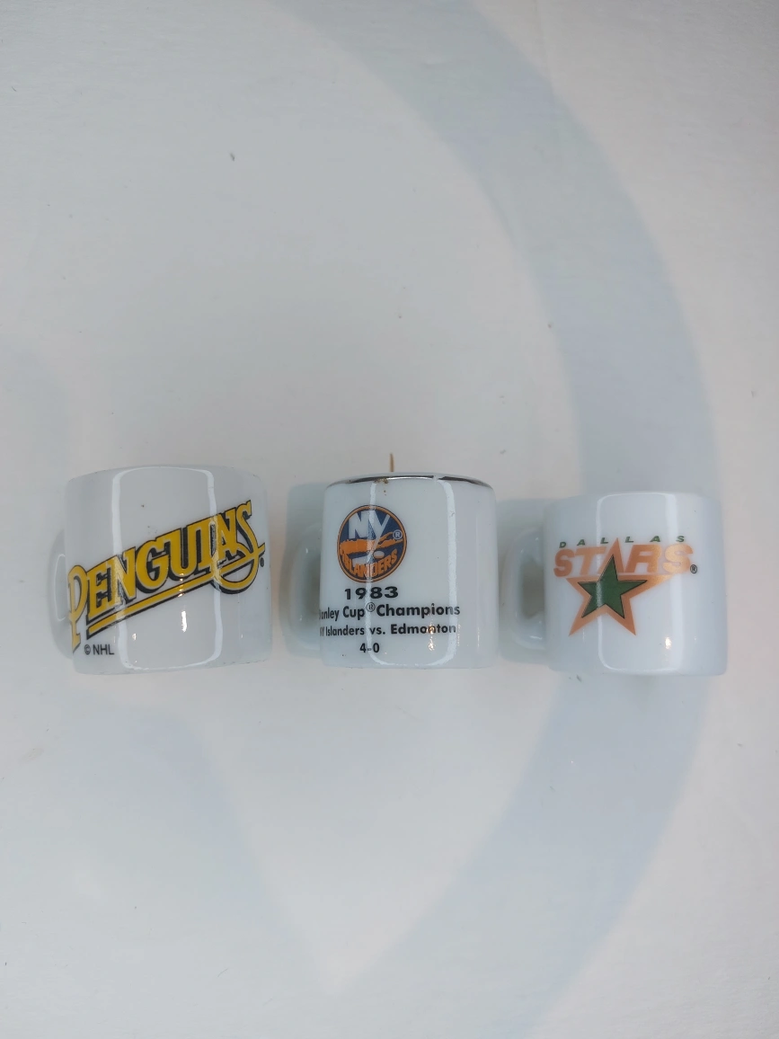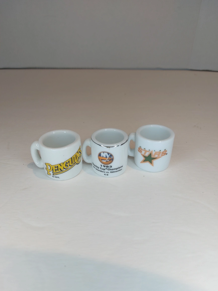 NHL Mini Mugs - 3 All in Excellent like new condition Each mug is 1.25" high by 1.5" across (including handle) Pittsburgh Penguins Dallas Stars New York Islanders - 1983 Stanley Cup