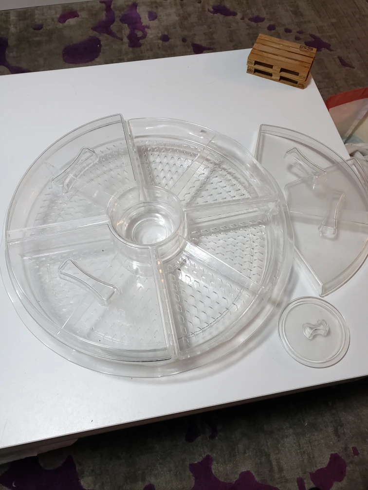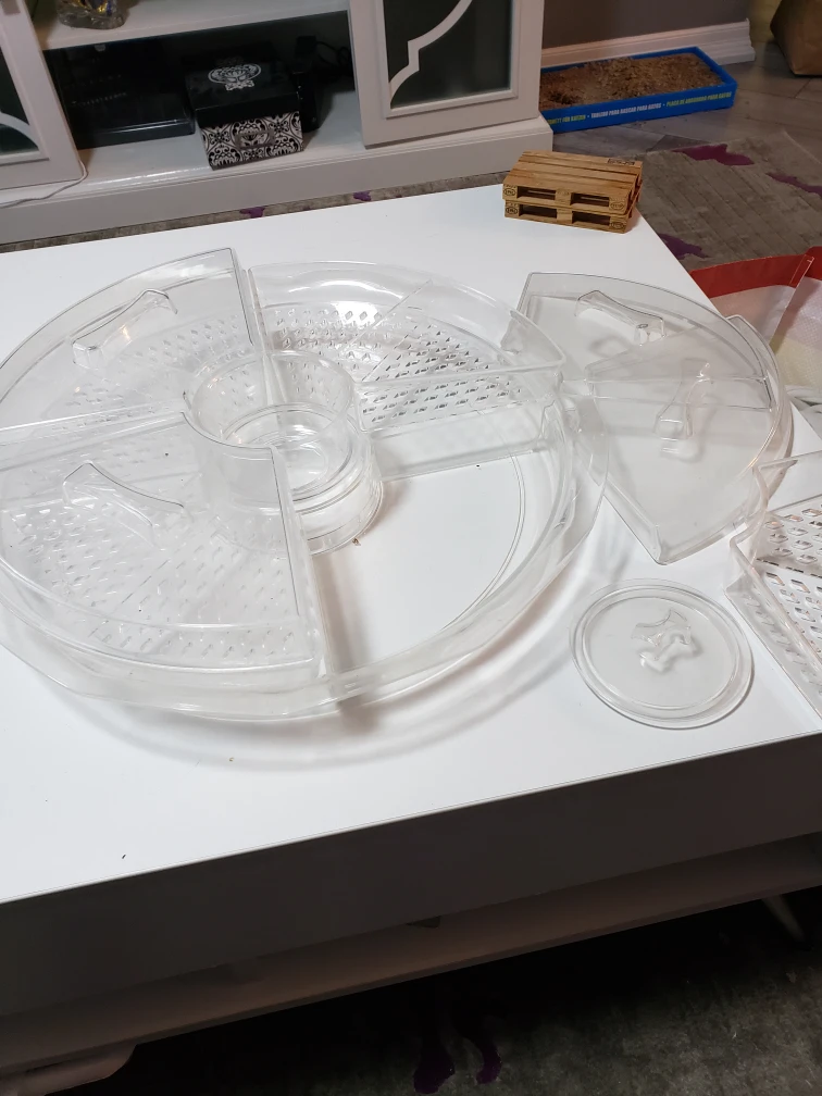 -large tray for veggies and dip -lids and removable trays for easy cleaning -area for ice under the trays to keep everything cool -pick up in south Ajax