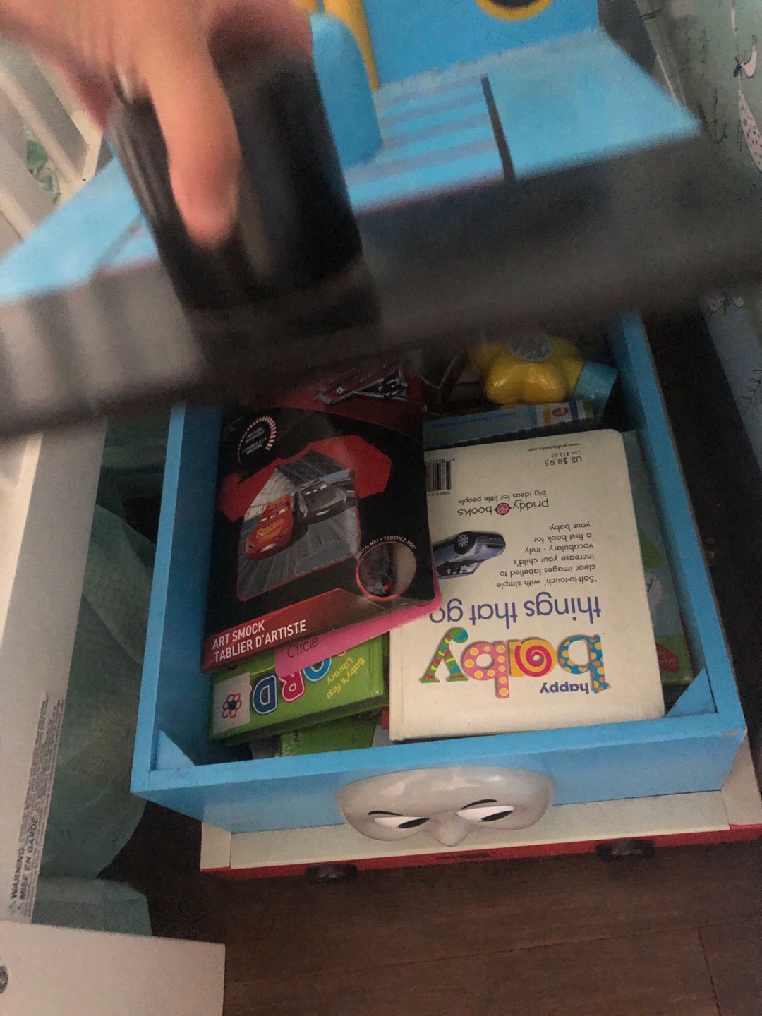 Wooden Thomas where a child can sit on it and pretend to drive/play and has storage underneath PLEASE NOTE SELLING THOMAS ONLY, ITEMS INSIDE OF BOX ARE NOT INCLUDED Great for any Thomas lover or for a playroom or bedroom THANKS