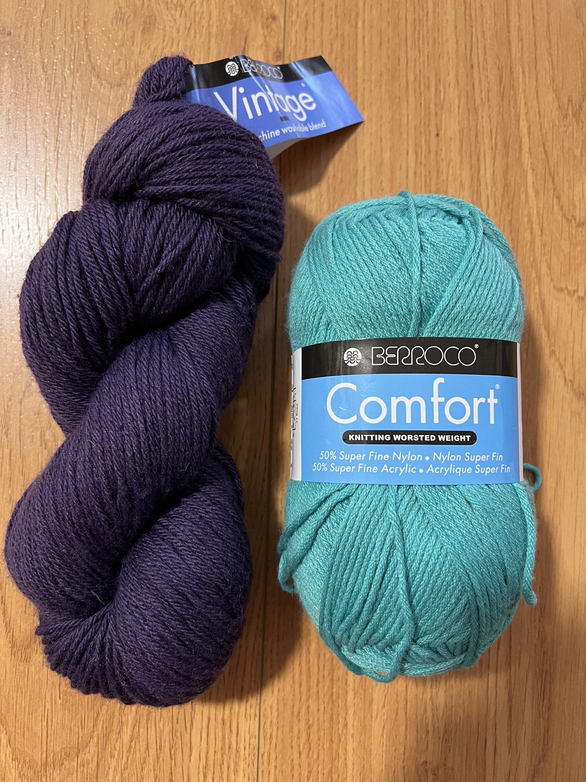 Very soft worsted weight nylon-acrylic blend yarn. Purple yarn SOLD. $5 for turquoise yarn. From a pet-free, smoke-free home. Pickup in Richmond.