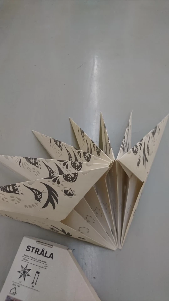 Paper fold up Ikea star. Add your own lights. for Christmas or new years. Pick up Landsdowne or Ossington area