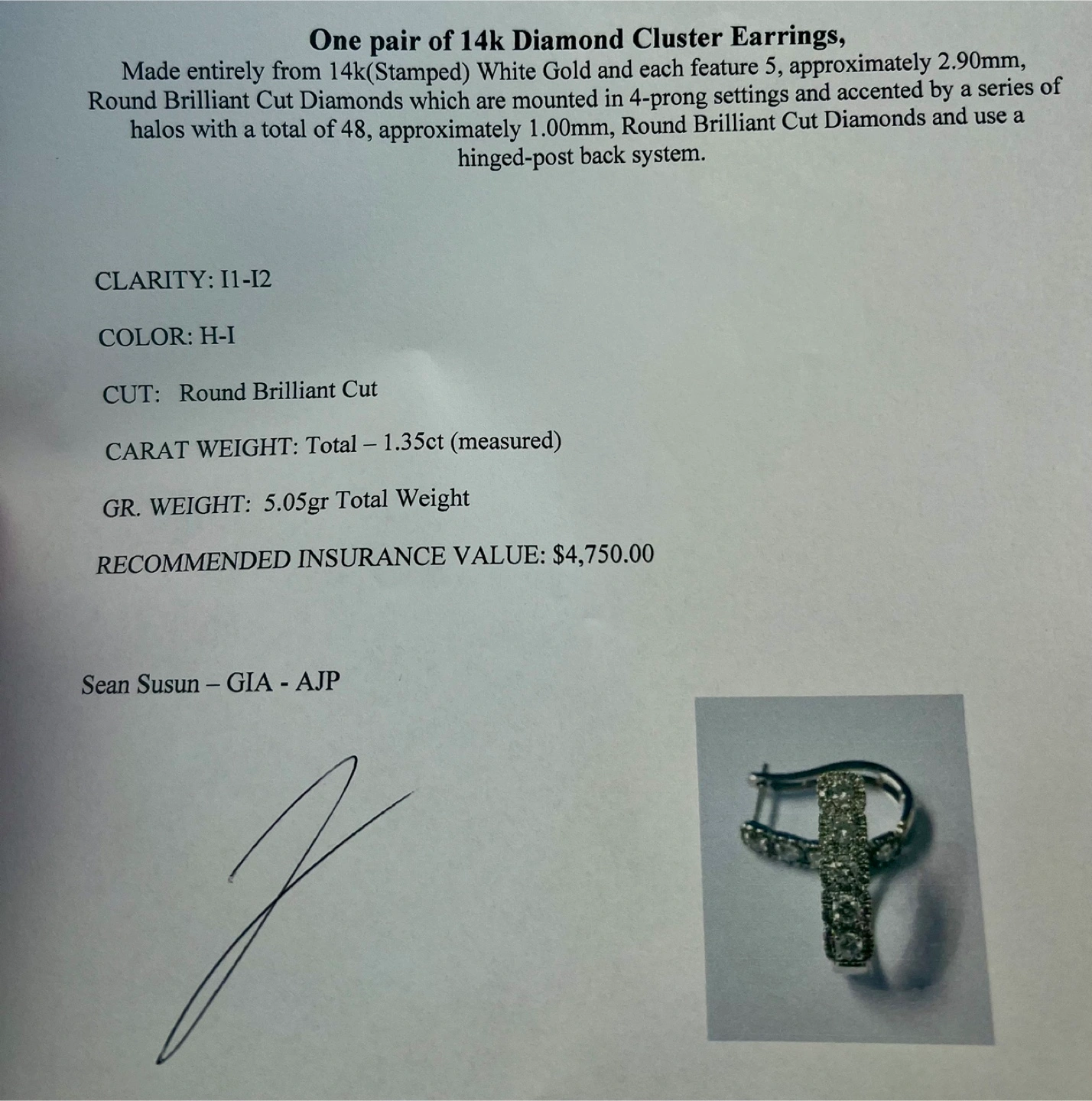 14 k Sparkling diamond hoop earrings, perfect for adding a touch of elegance to any outfit An appraisal attached