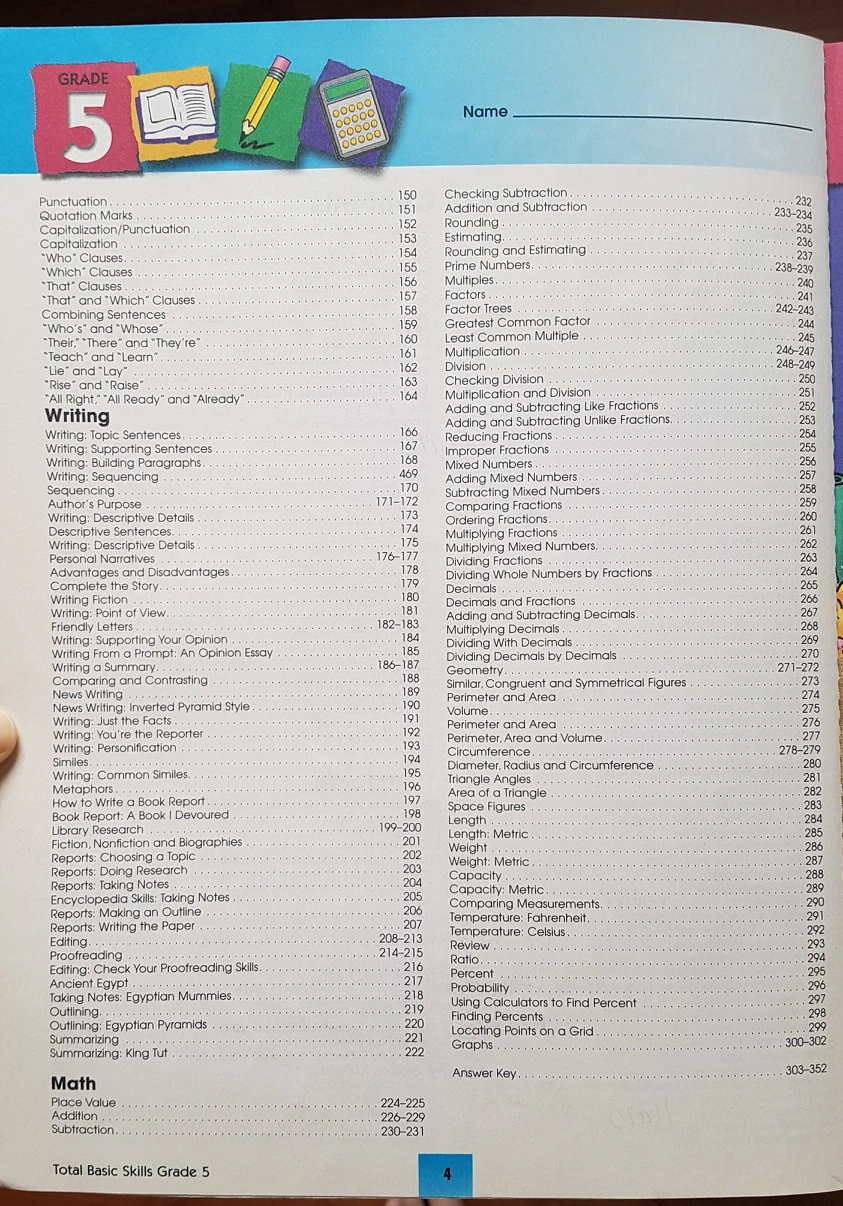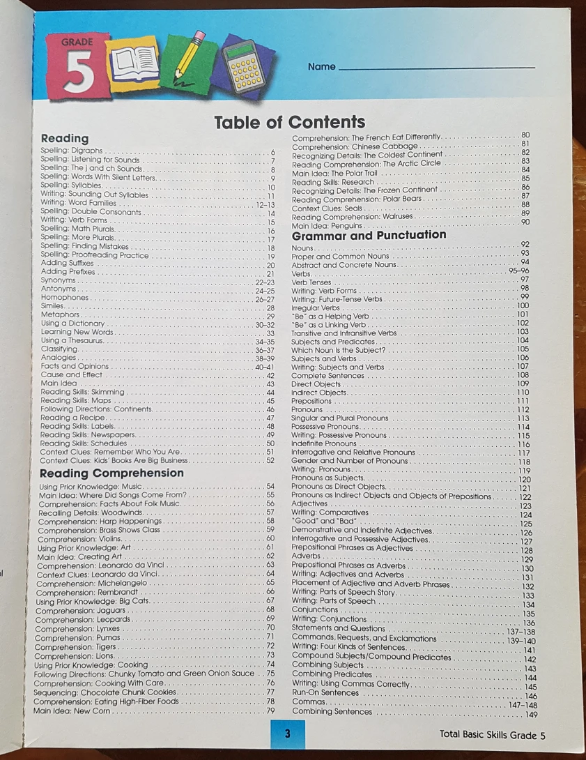 Total Basic Skills Grade 5 - Covers topics in reading, reading comprehension, grammar and punctuation, writing, and math - First few pages filled in with pencil (you can easily erase it though) The 10 Most Essential Elements - Great science book for a light read Hoping to give away both together. Happy to drop off if you're within biking distance from me (up to ~7-10 km from Yorkdale mall)