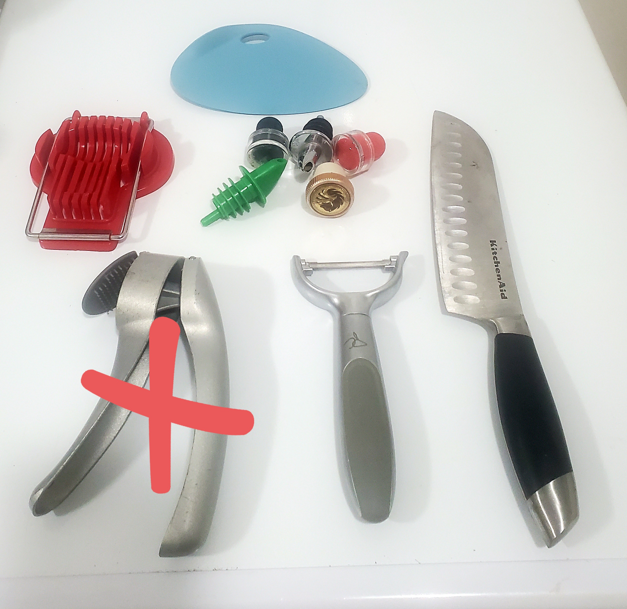 P/U - Birchmount & St Clair PC Garlic press - TAKEN PC Potato peeler Wine bottle covers Egg slicer Kitchen Aid knife Pastry slicer