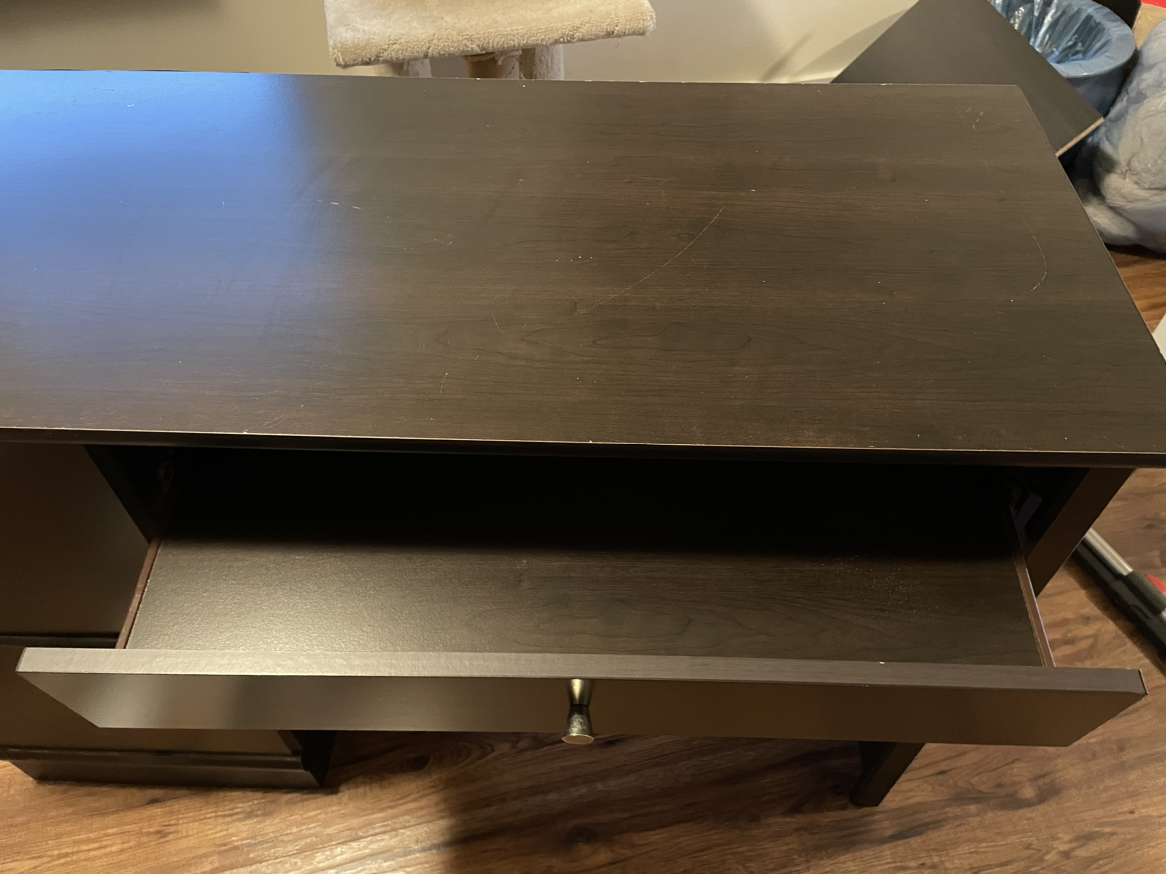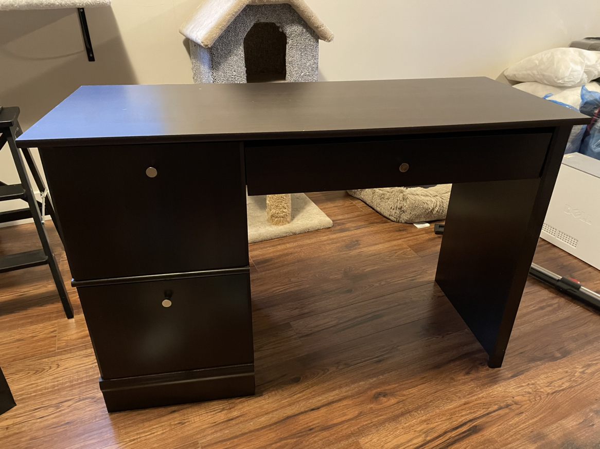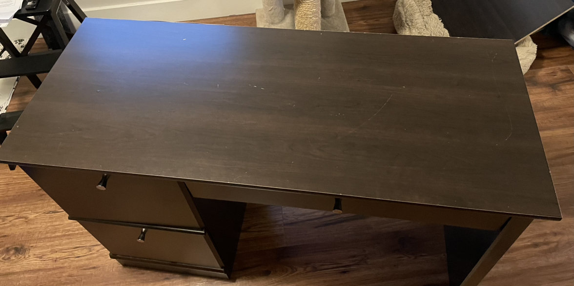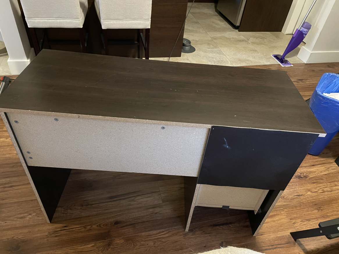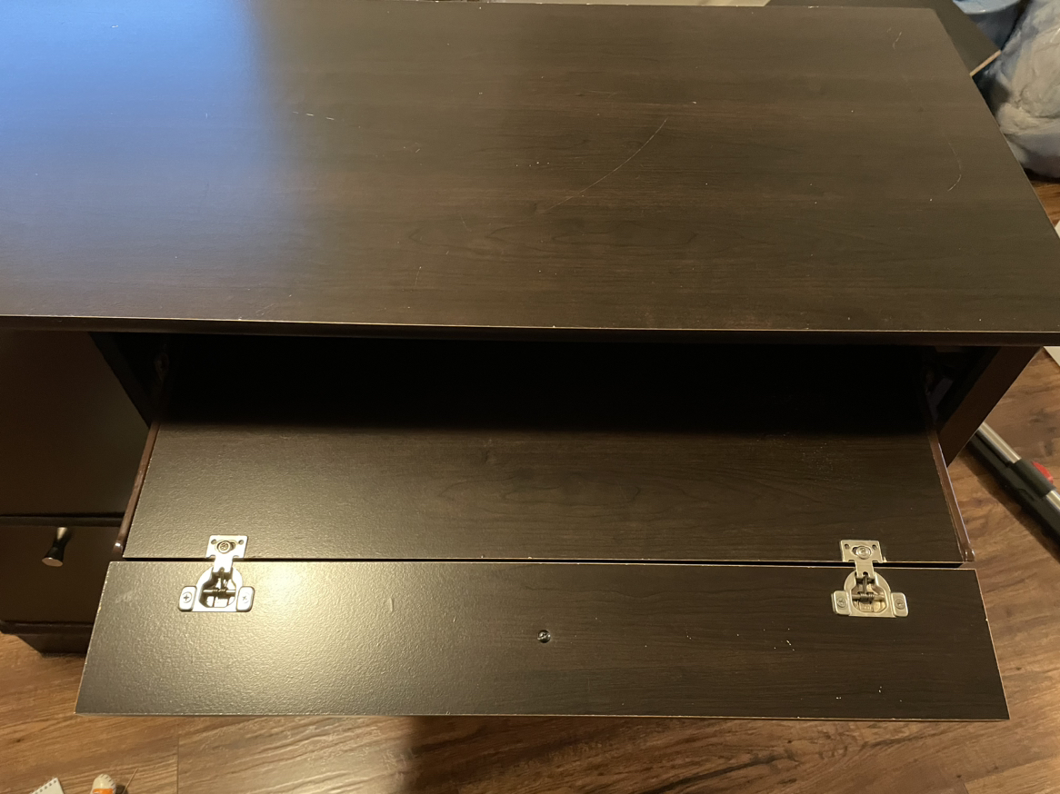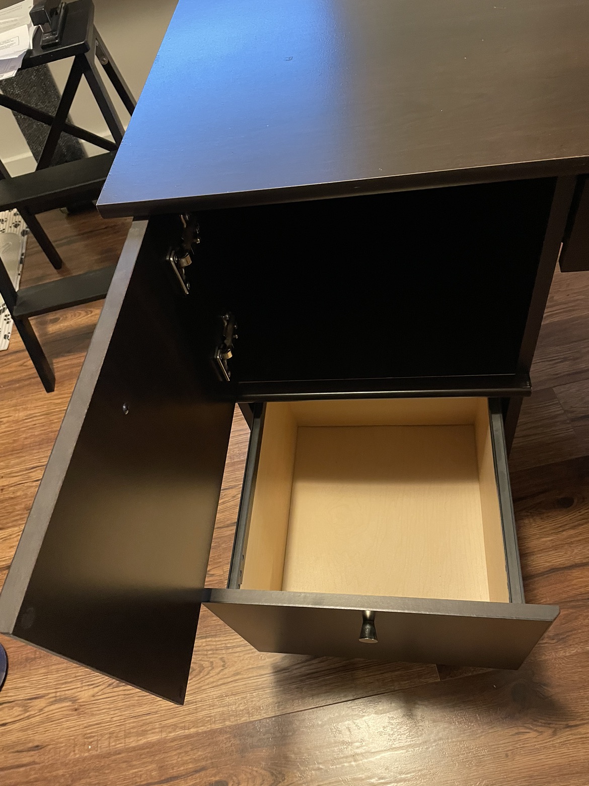 No longer needed , great for students room as I had it for my daughter. Separate compartment for keyboard as shown in picture. A few scratches on the top. Please see measurements and have your own vehicle large enough to pick up. I DO NOT deliver. Thank you.