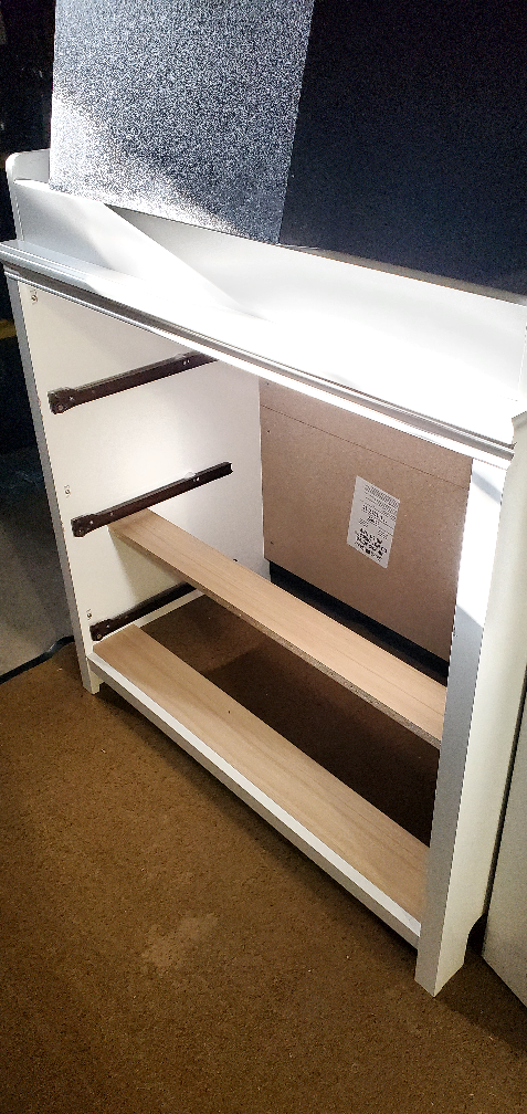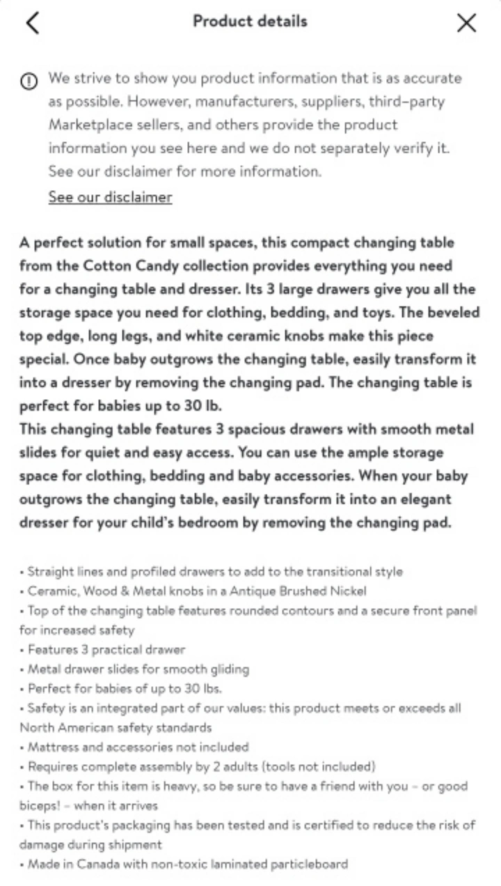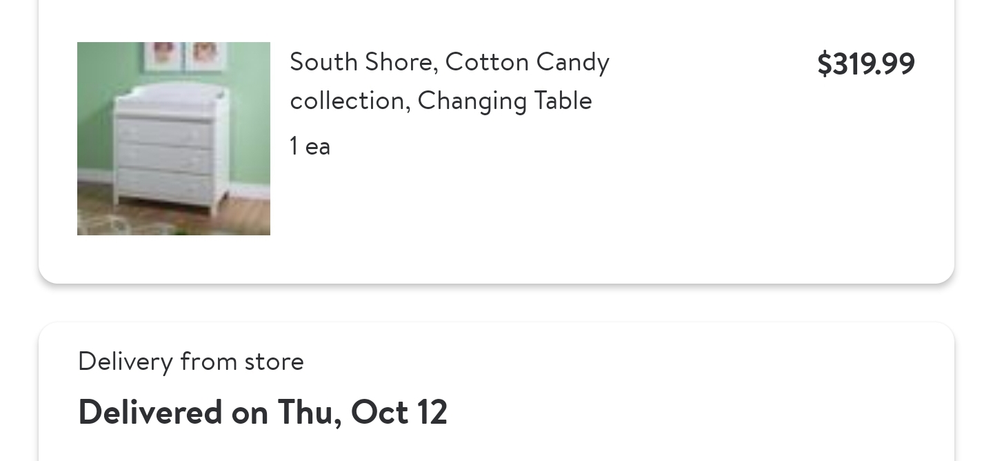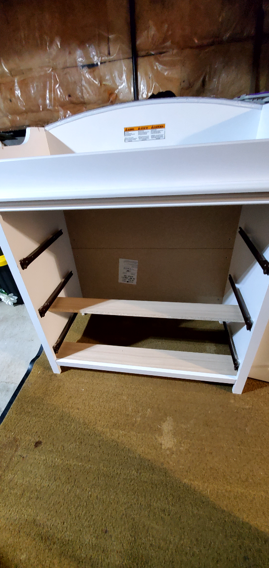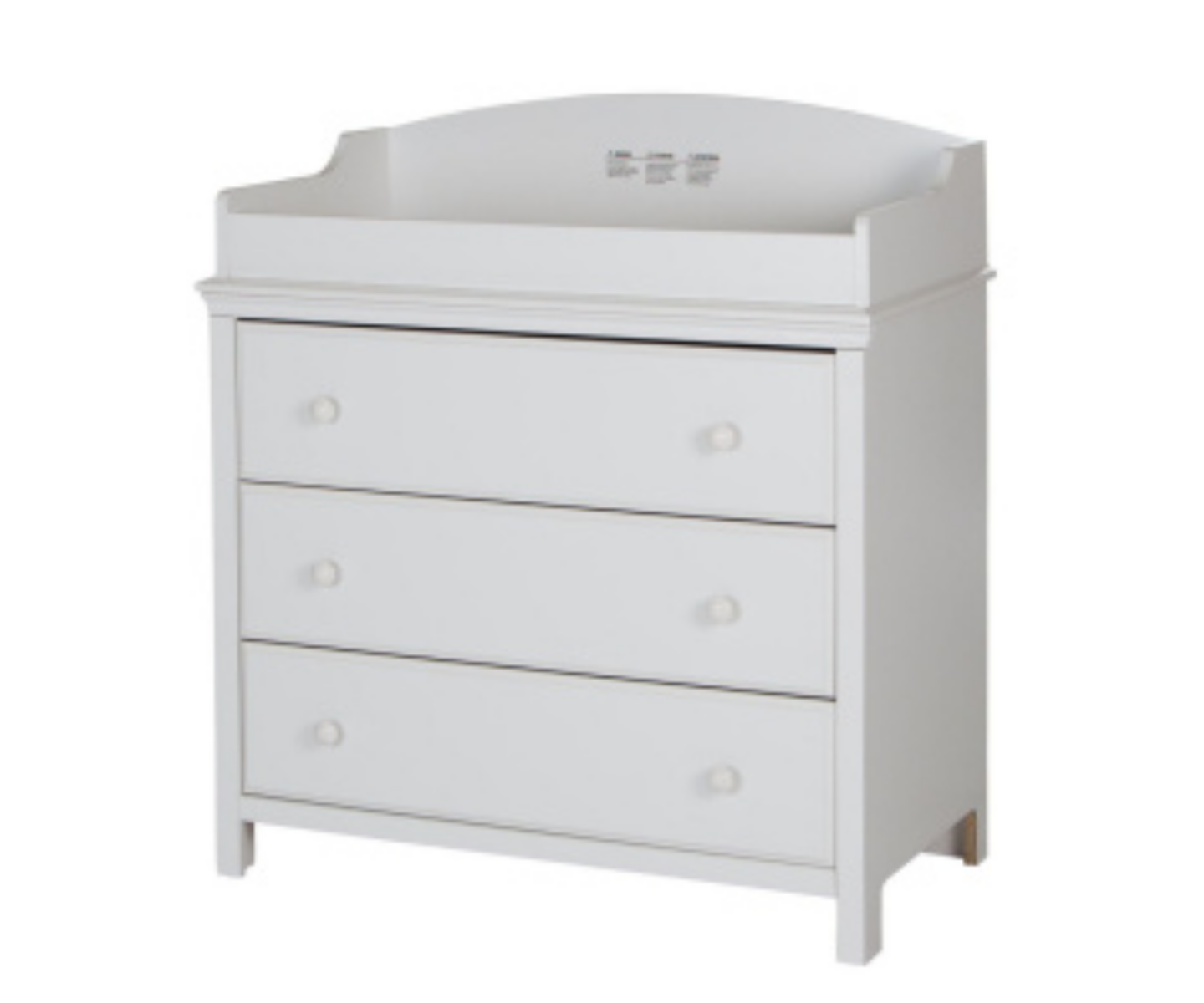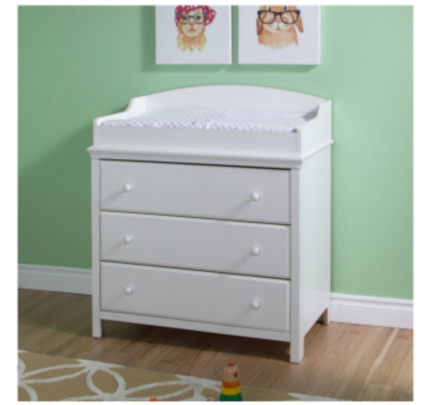 South Shore, Cotton Candy collection, Changing Table bought October 2023 but we are changing theme for the nursery so we don't want this also we didn't use it much as I have other change tables top comes off and changes to a Dresser look worth $319.99+tax comes as assembled. damage is showen on the pic damage was caused when I removed the safety pad I had on it