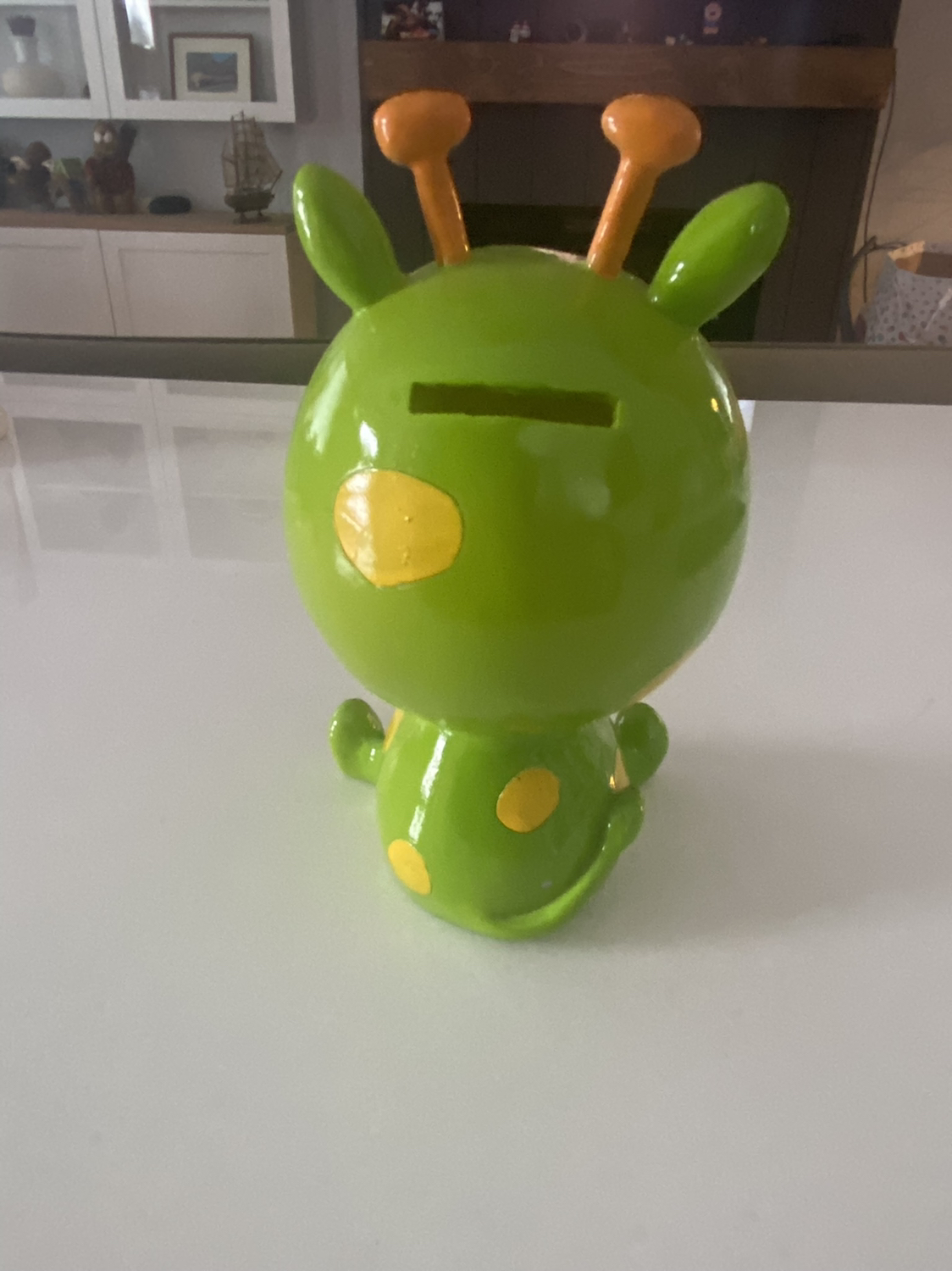 Adorable giraffe piggy bank. Beautiful bright colours and unique design. Made from a heavy hard plastic, very durable. Measures about 7.5” high. Perfect for a child’s room or collector. Pick up in East York at O’Connor & Don Mills