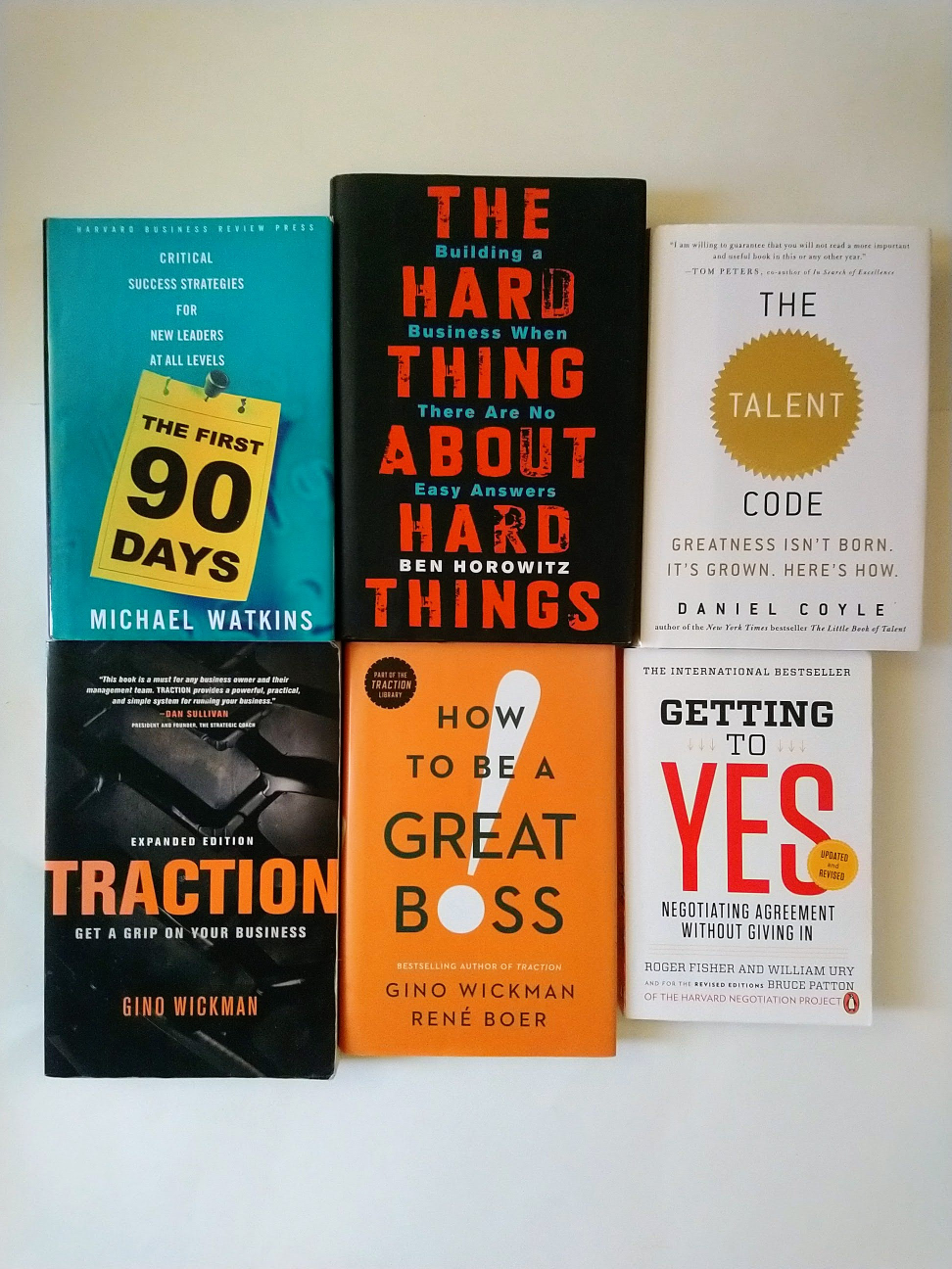 Location: Yonge and College /downtown Toronto $7 each - The First 90 Days: Critical Success Strategies for New Leaders at All Levels - Michael Watkins - The Hard Thing About Hard Things: Building a Business When There Are No Easy Answers - Ben Horowitz - The Talent Code: Greatness Isn't Born, It's Grown. Here's How - Daniel Coyle - Traction: Get a Grip On Your Business - Gino Wickman - How To Be A Great Boss - Gino Wickman / Rene Boer - Getting To Yes: Negotiating Agreement Without Giving In - Roger Fisher & William Ury Feel free to check out my other book posts as well!
