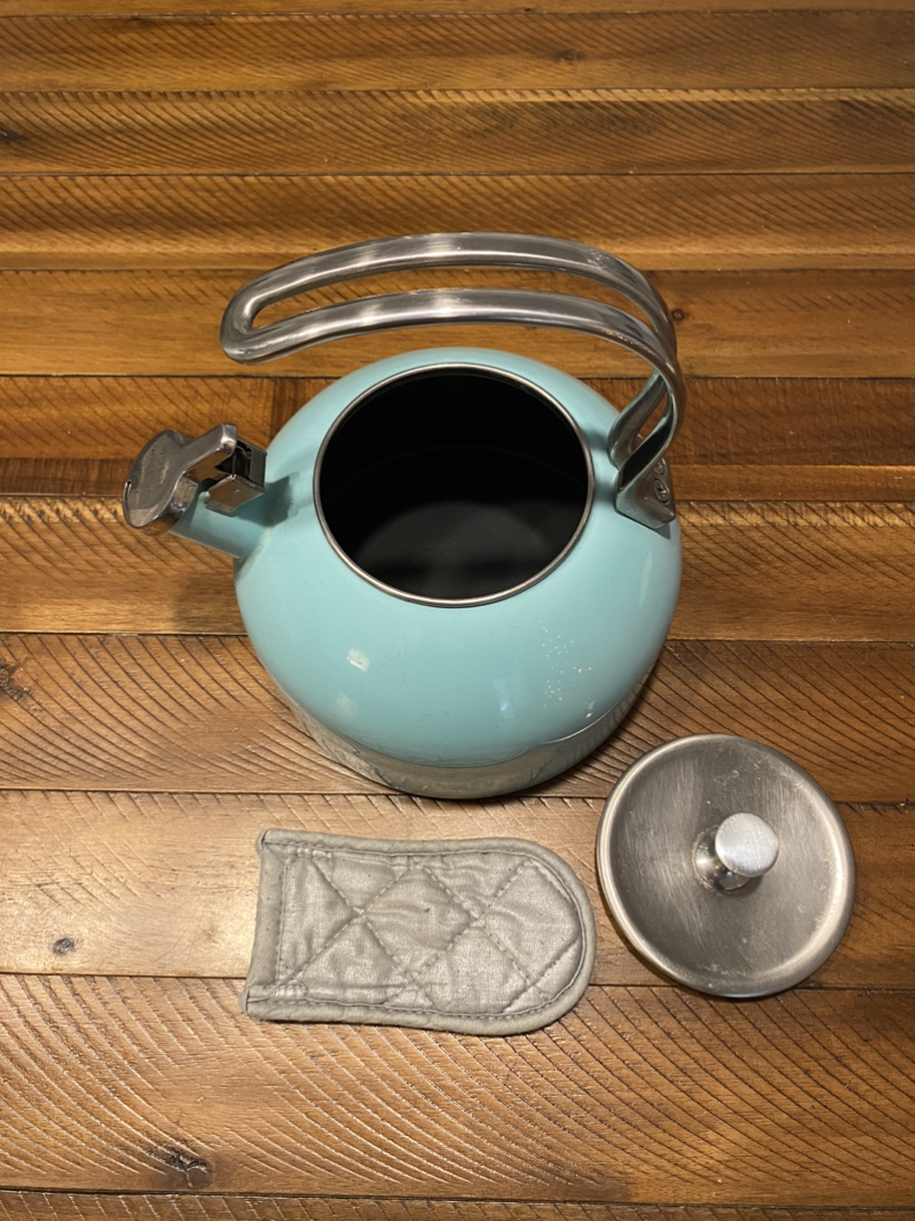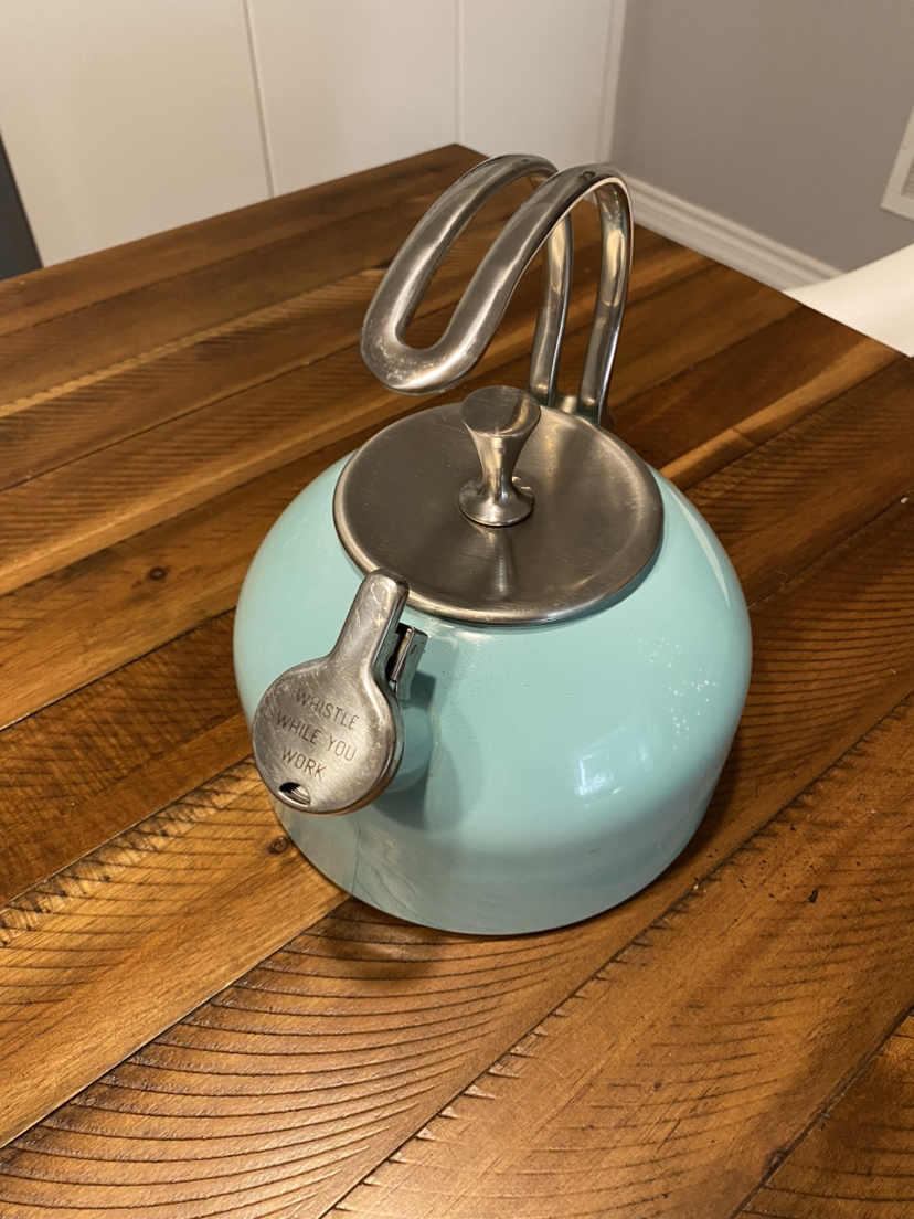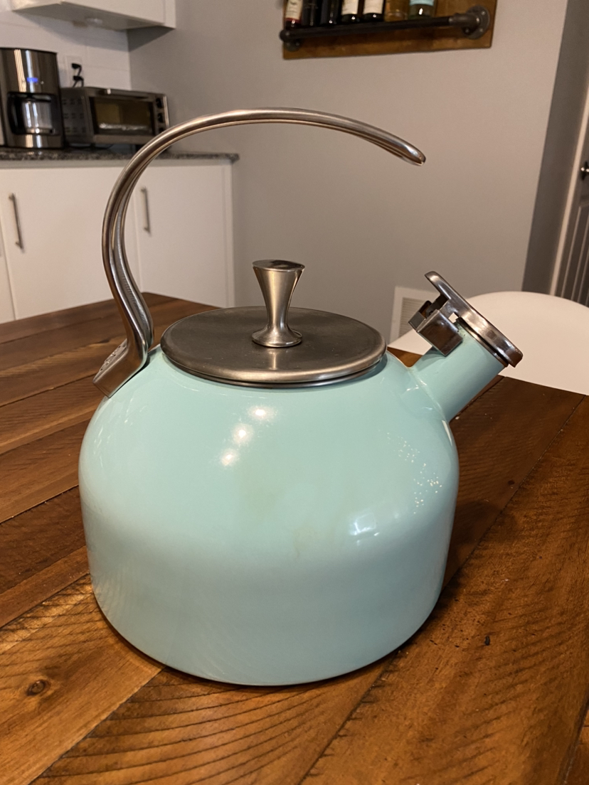 Kate Spade whistle while you work kettle in turquoise. This colour is no longer available for purchase on the official website. Used, but in good condition.