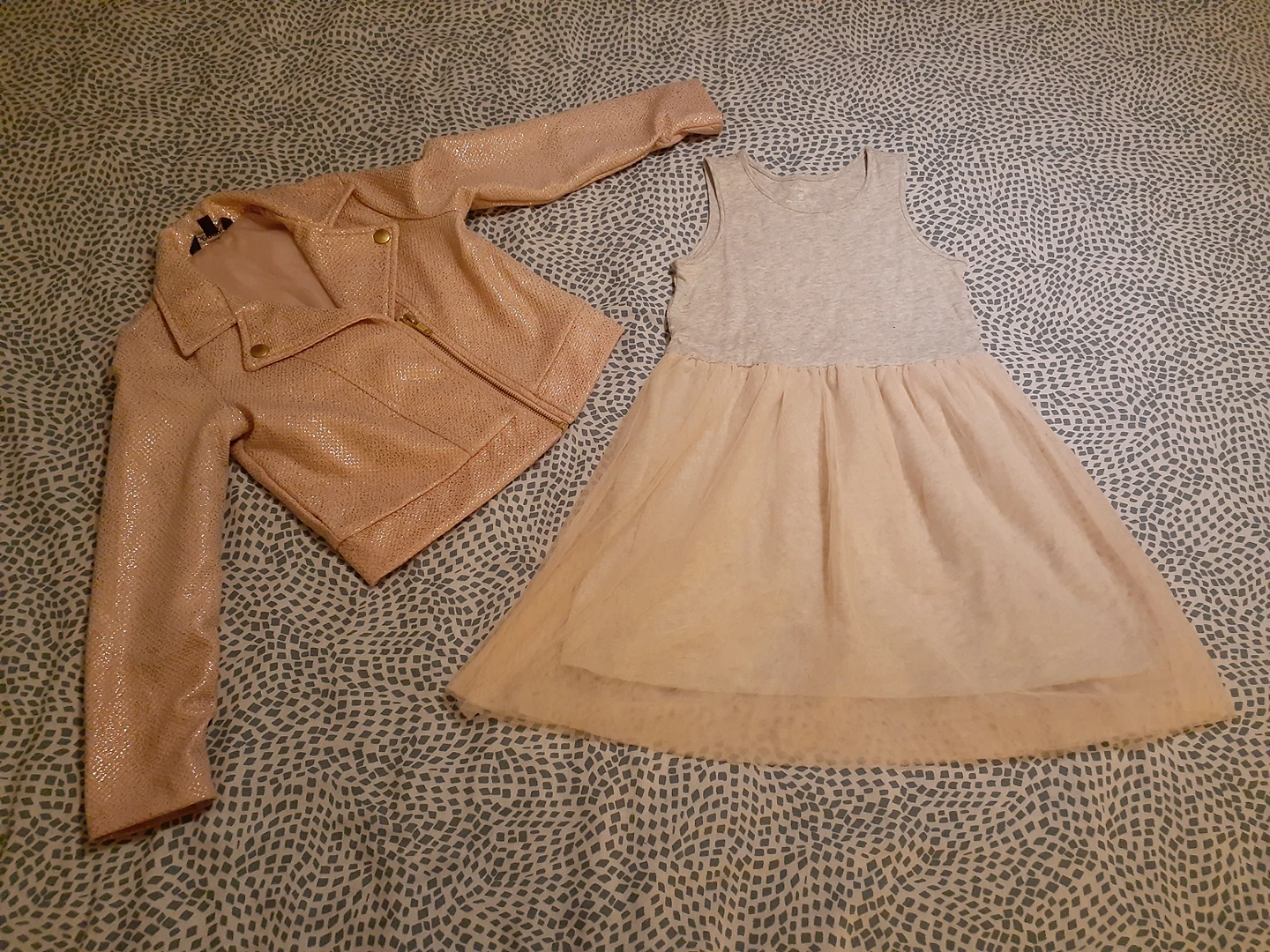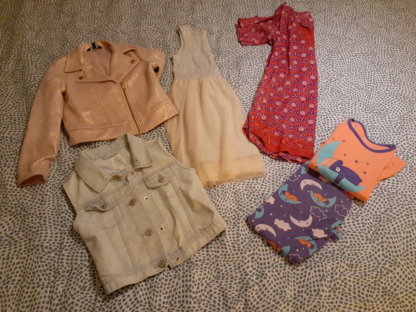 Girls size 5/6 lot.... sleeveless tutu dress with moto jacket, paisley print shirt dress. jean vest, top and bottoms pajama set ... smoke free/pet free home smoke free/pet free home