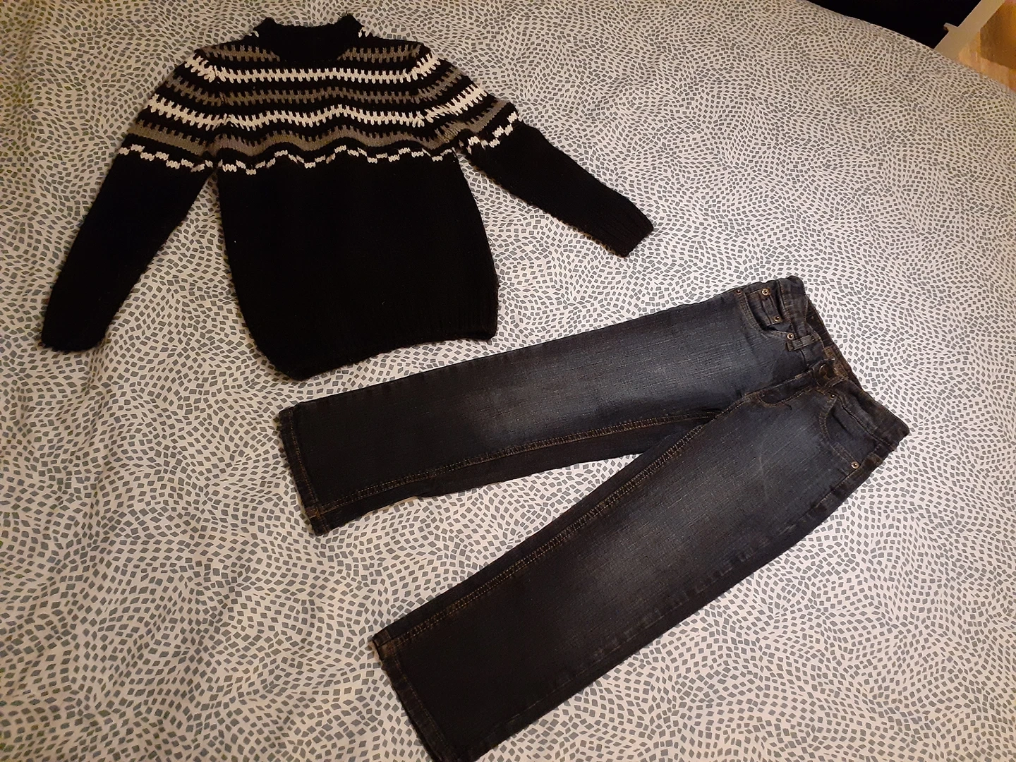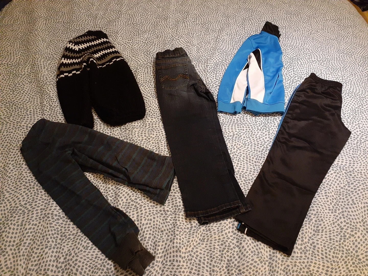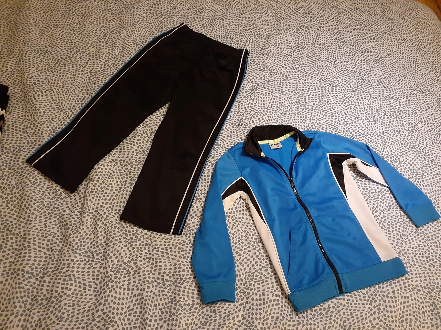 Boys size 6 Lot - 5 items ... ASICS Blue track suit, Black sweater, blue jeans, green hooded shirt... smoke free/pet free home