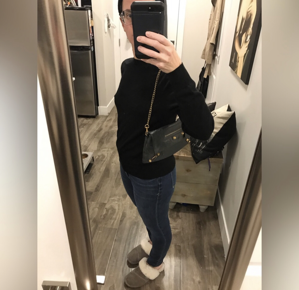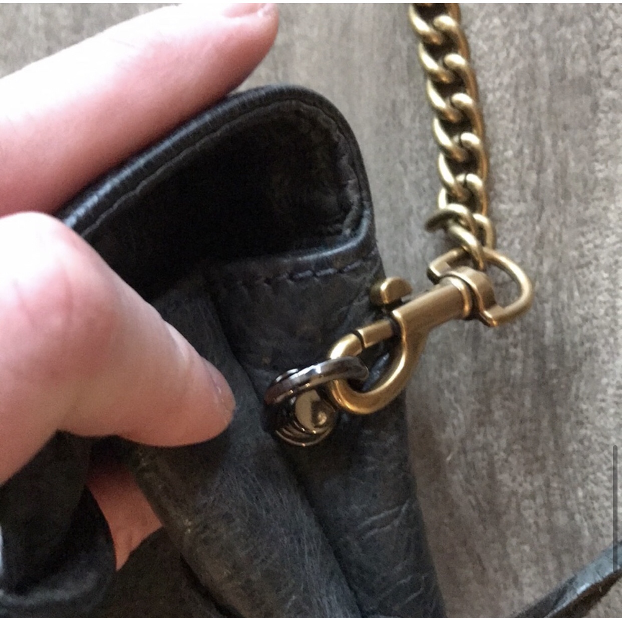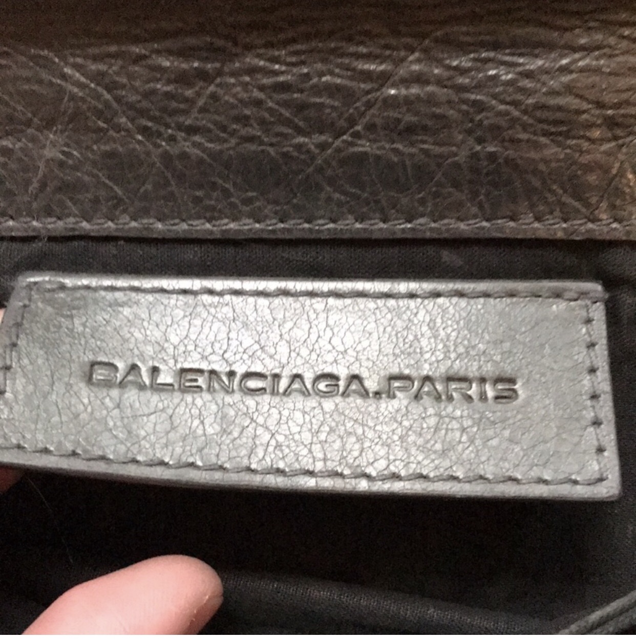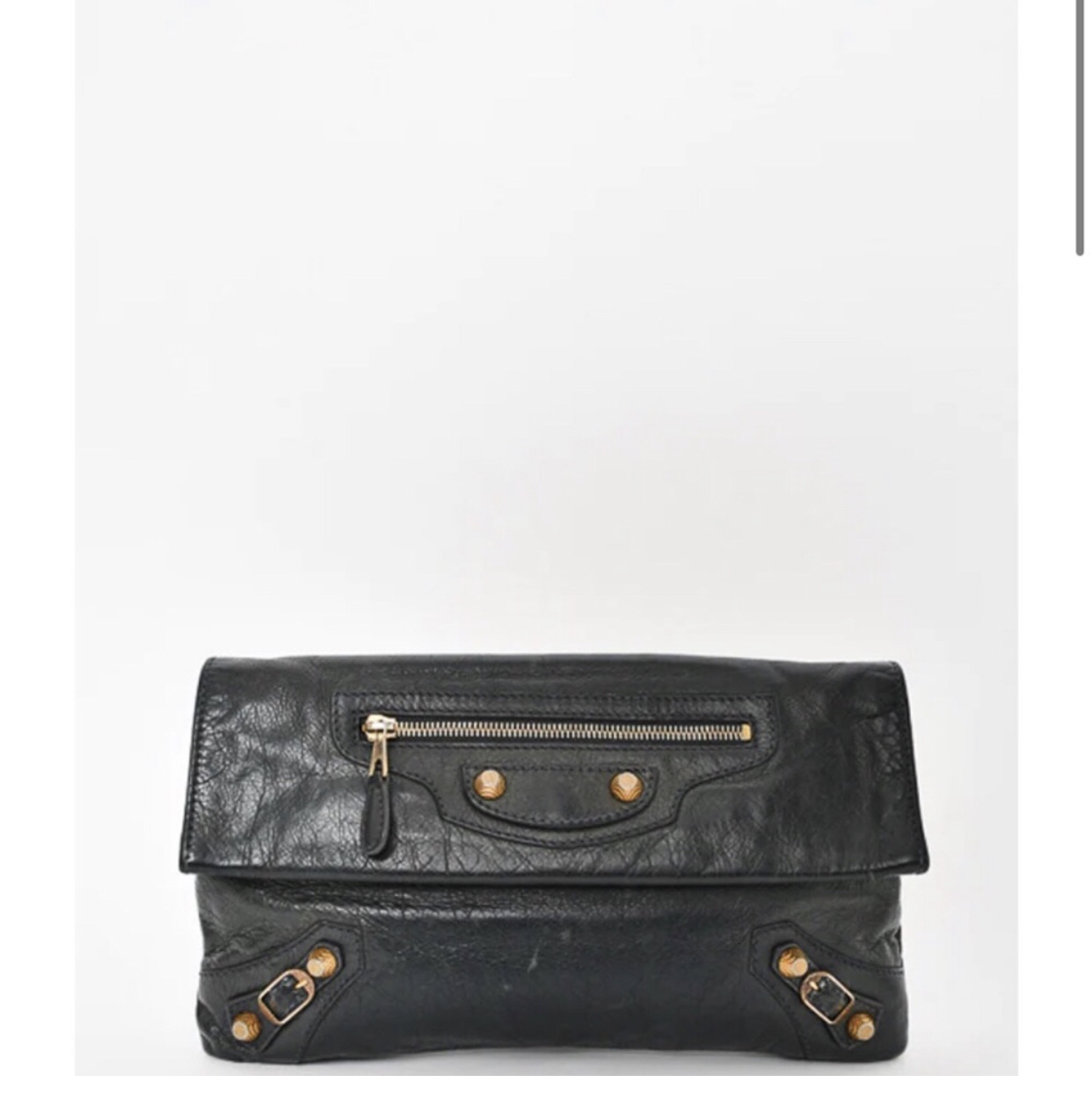 Balenciaga grey - green fold over clutch with giant hardware & added strap Some scuffs, Bronze Color giant hardware. No dustbag. Yes mirror. No cards, have reciept from store I purchased second hand. Has zip pocket and hidden pocket in pouch. Bronze add on strap included Length 11” Height 7” Strap drop 9”