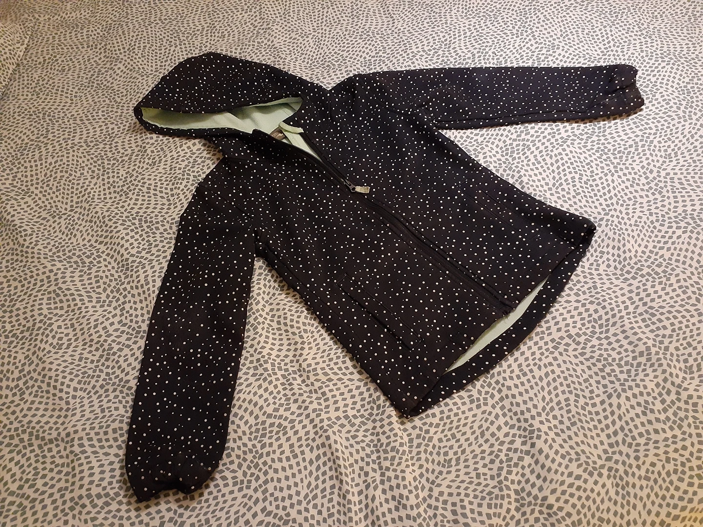 Girls spring/fall hooded jacket size 7/8... water repellent... Navy blue polka dots..Joe Fresh... smoke free/pet free home