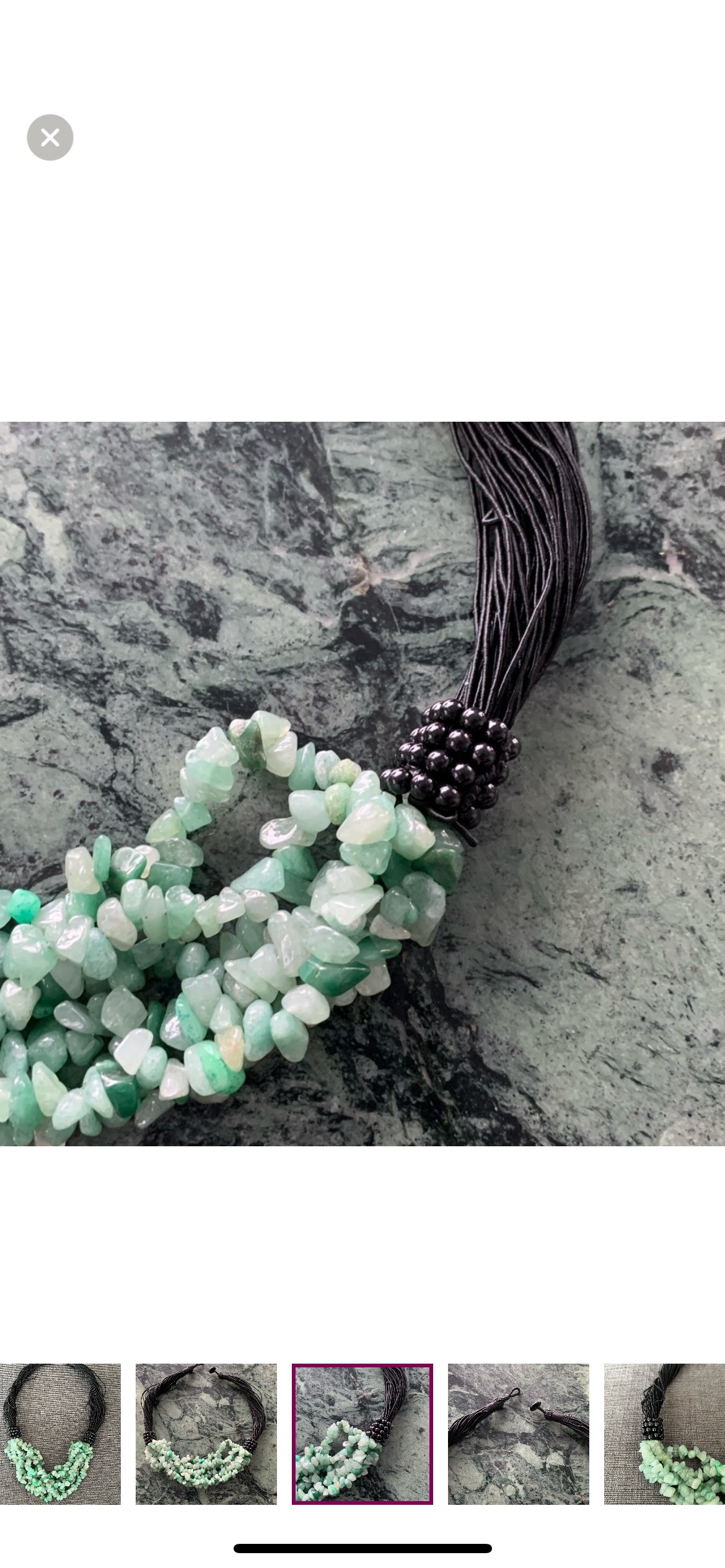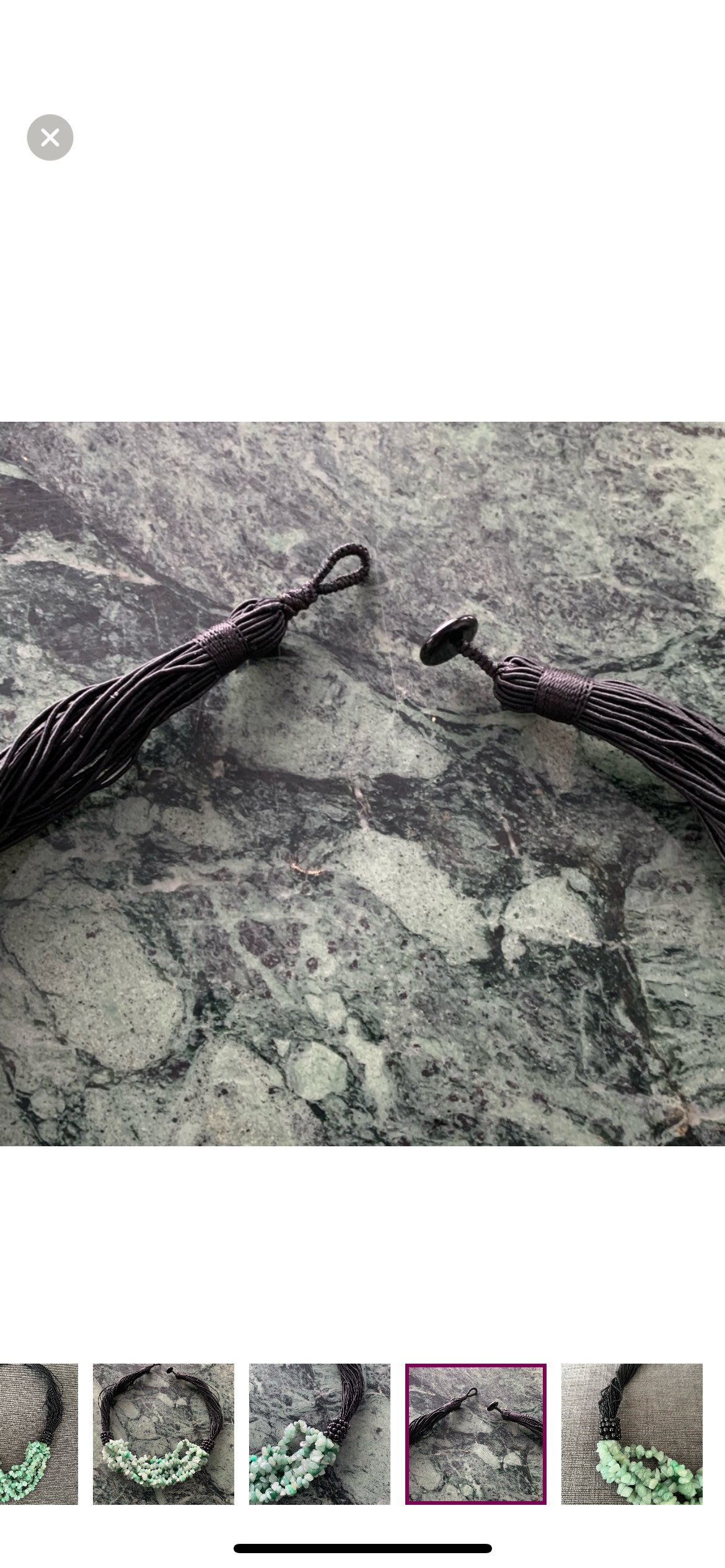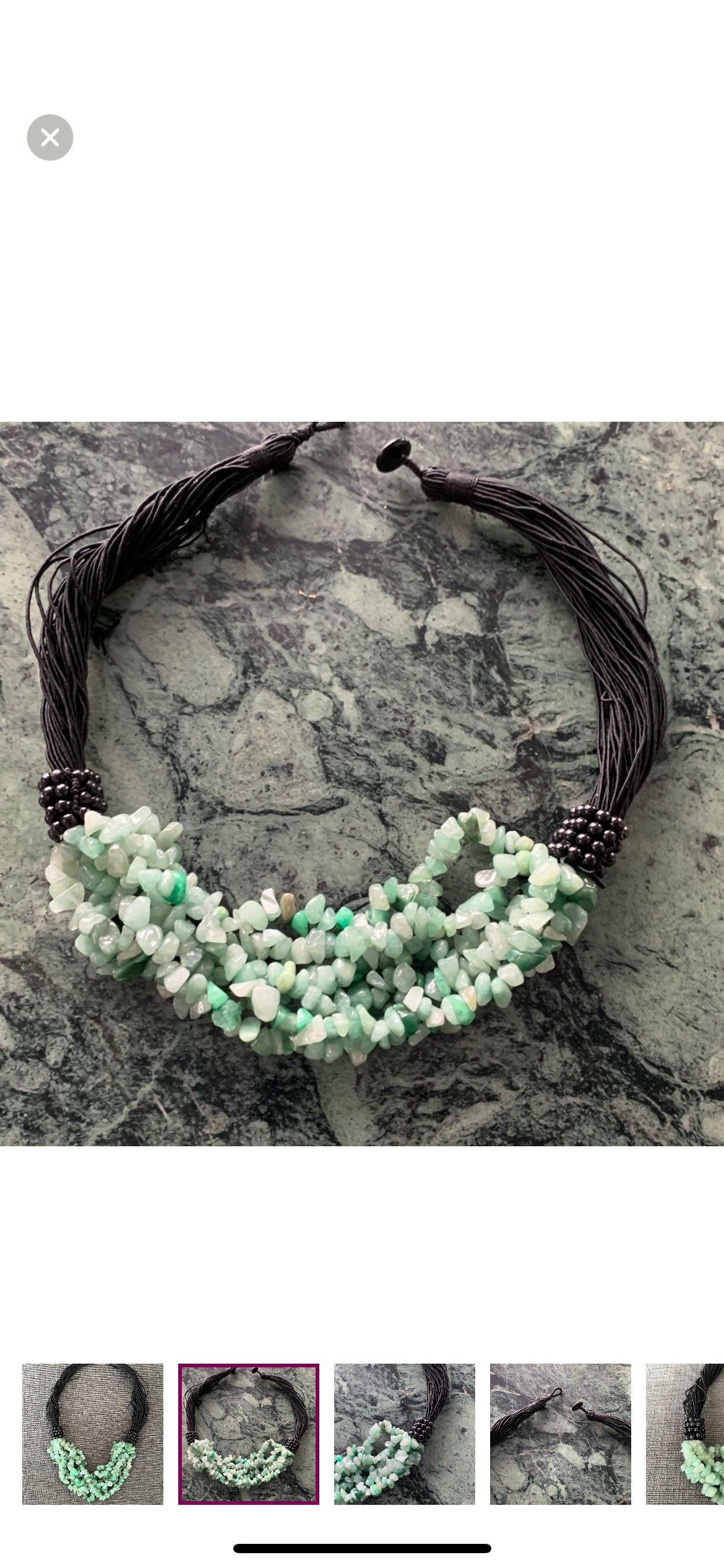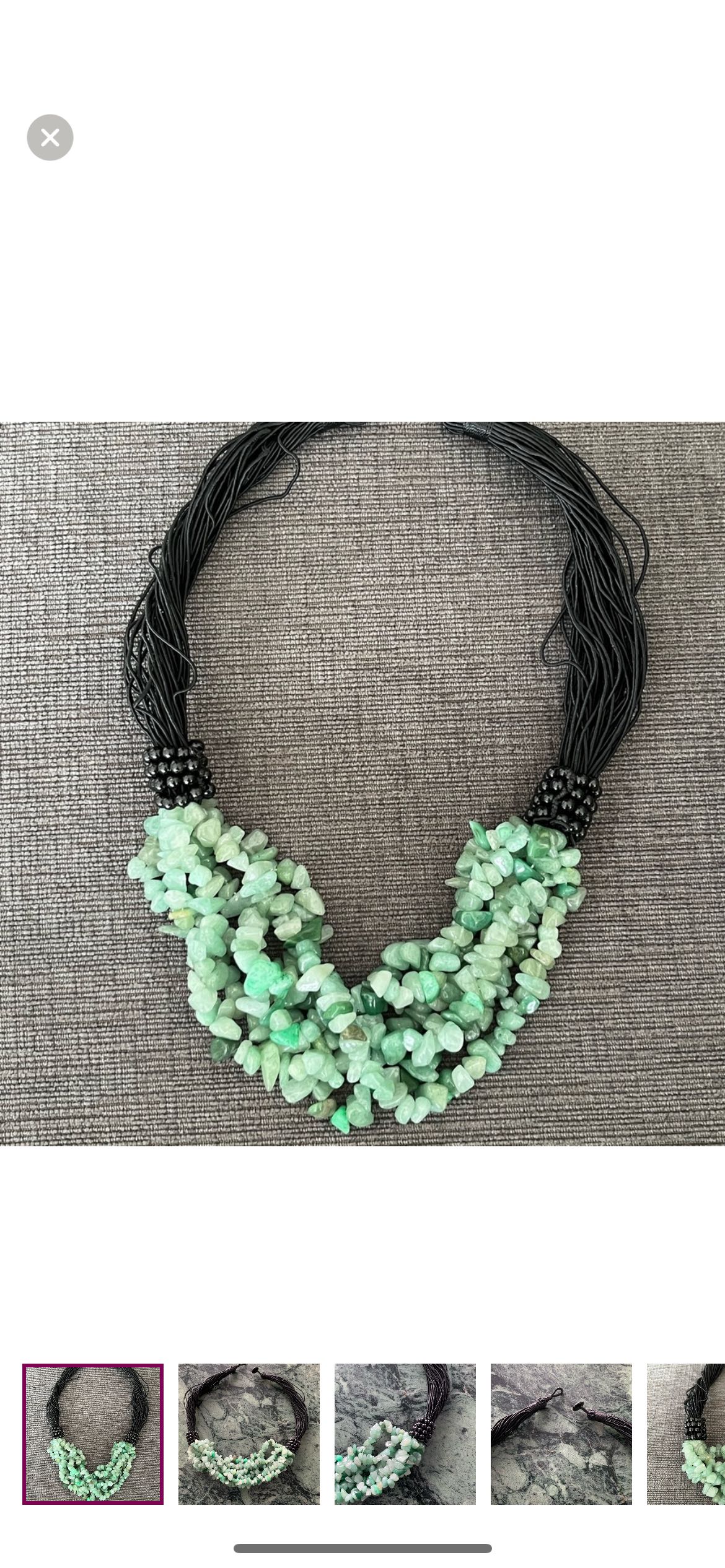 Semi precious Jade chip stones on black twisted multi cord necklace Button style closure Slightly longer than choker length Like new- literally worn once