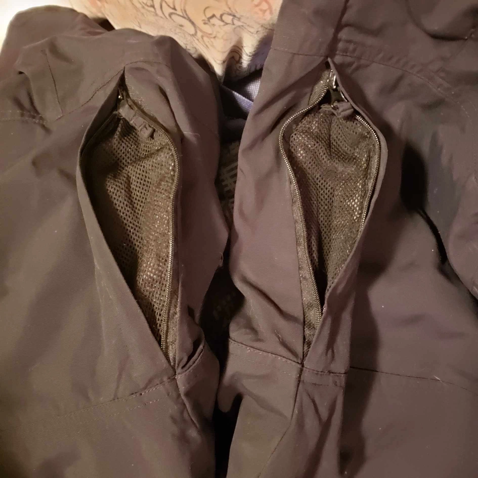 Used as play snowpants. Zipper, velcro, and 2 buttons to do them up. Has velcro waist to adjust size. There are zippered air vents on the inside of each thigh (see 3rd pic) Slight wear on one knee (see 4th pic) Brand: Sunice Size: 18 youth Pick up near Grandview/Beatrice in Oshawa