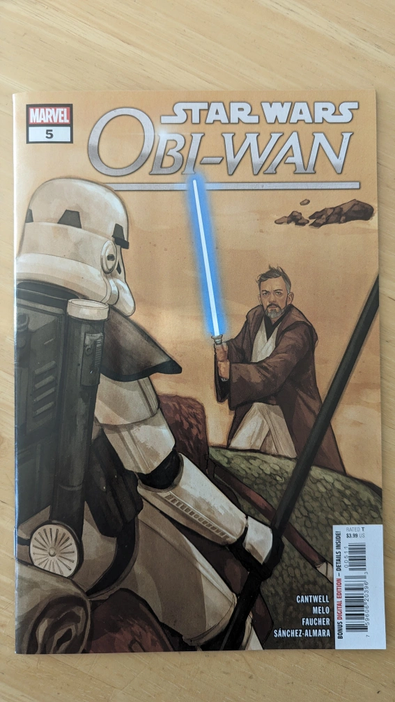 Star Wars Obi-Wan Kenobi #5. This issue is in near-mint condition, but not professionally graded. Written by Christopher Cantwell, this comic follows Obi-Wan Kenobi in his early years on Tatooine and it's a great addition to any collection. Published by Marvel in 2022, this comic book is perfect for general audiences who enjoy sci-fi and horror genres. Note: *Local pick-up only. *Deliver directly to address in the Lower Mainland (BC, Canada) area can be arranged upon request (Please, message me for more information).