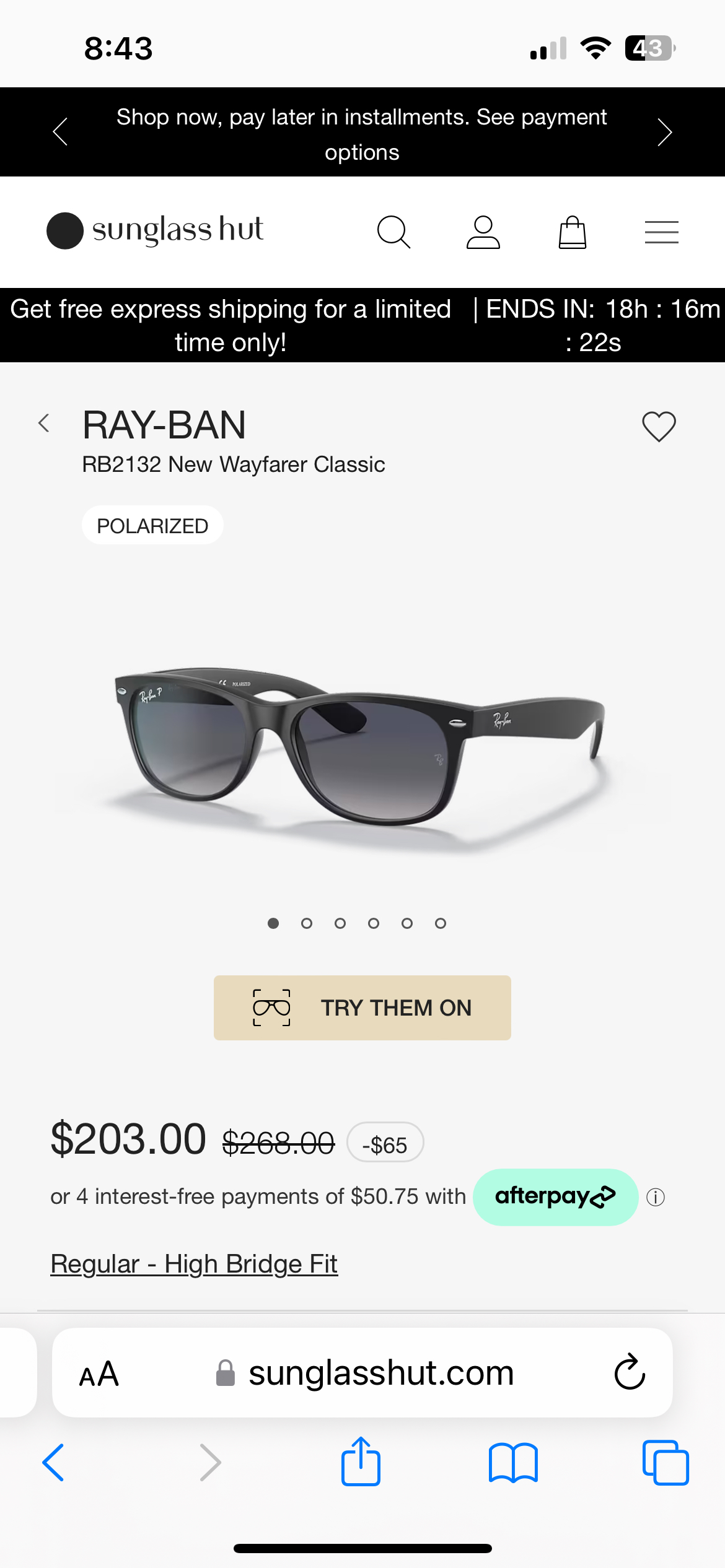 Brand new men’s sunglasses , worn only once and they’re in great condition. Selling for my boyfriend since he doesn’t need them