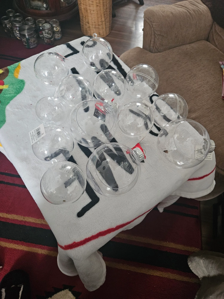 Show allSet of fifteen clear glass Christmas tree ornaments. Various sizes. Unopened package included.