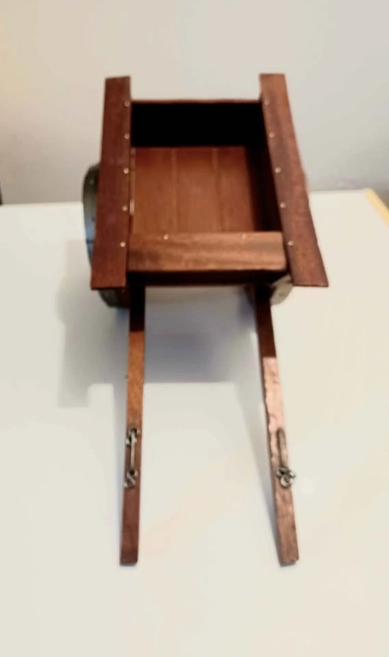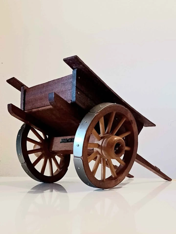Vintage, Handmade Decorative Wooden Cart, used as a Planter or for display purposes. Rare Unique Planter or Decorative Cart , it can hold potted plants or other small items. Made of Fir wood, with a rustic Antique Finish. Design: Features a Cart structure with Two Metal Claded Wheels, designed to be Functional for Easy Movement. Size : 15 * 7.50 " Very Good Condition Please check out my Rare items!