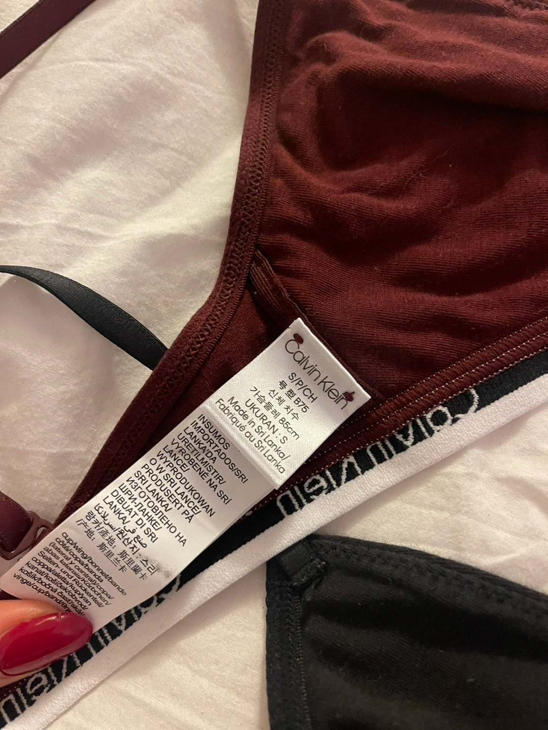 2 Calvin Klein Bras in mint condition! Burgundy and Black colours. Size S. Smoke-free and pet-free home. Check out my other listings to bundle π