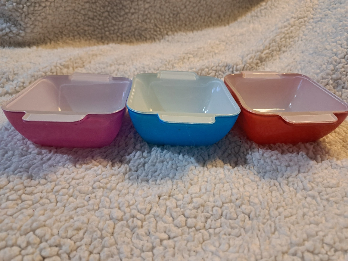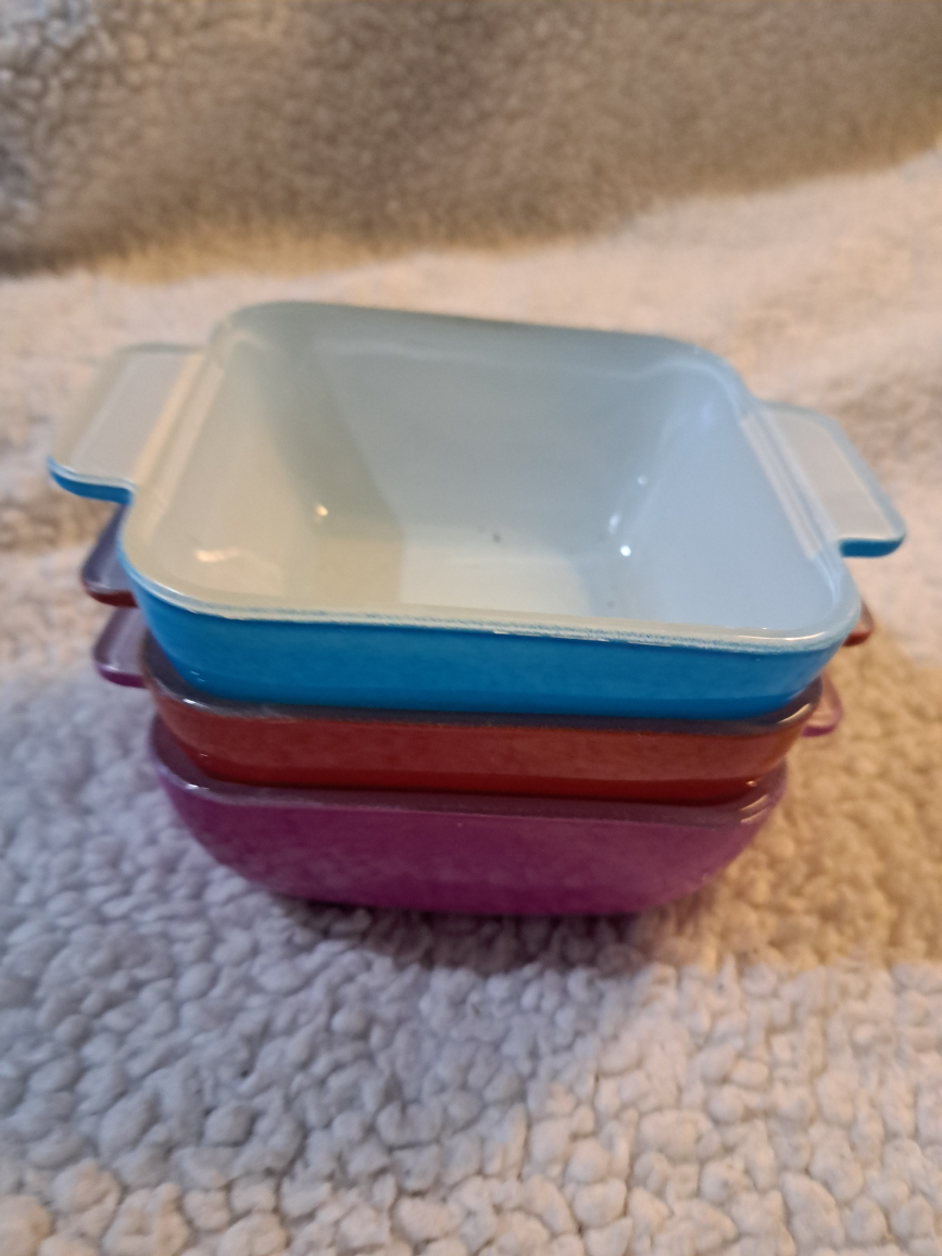 cute trio painted glass square bowls for small salads or whatever you can find them useful for.