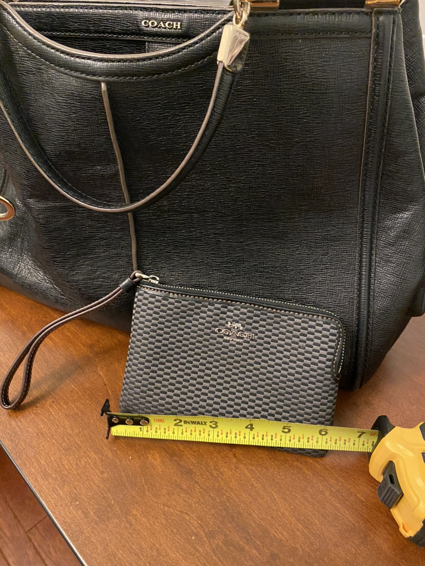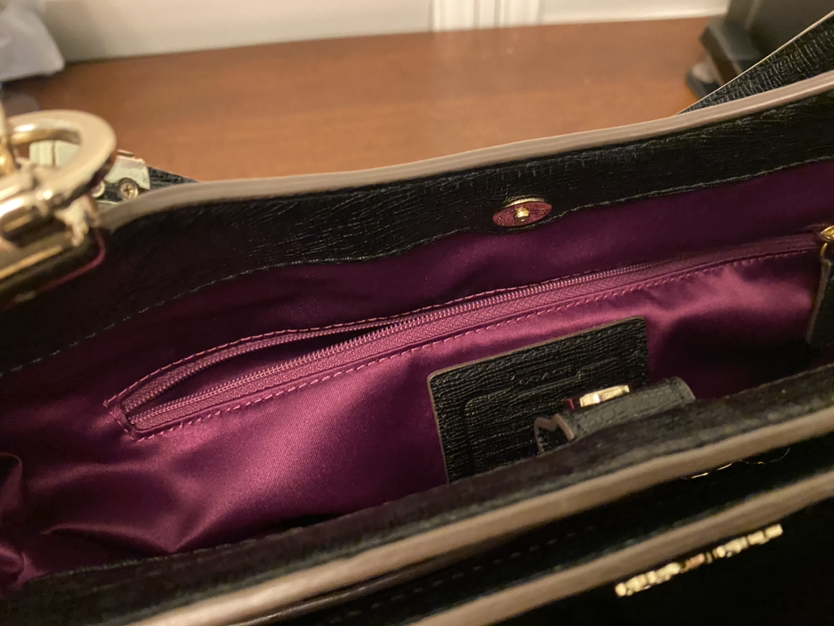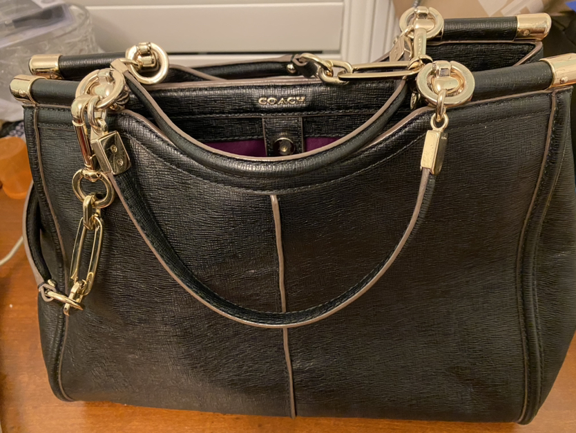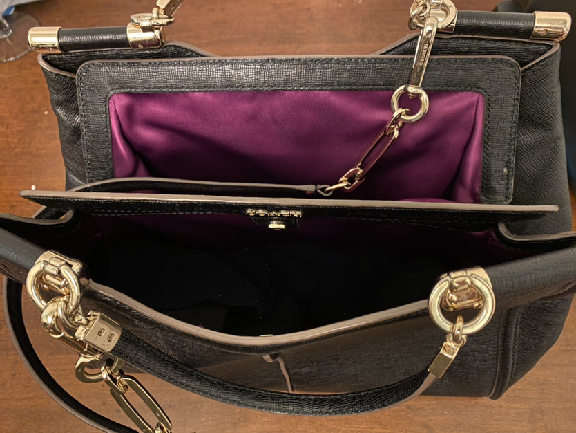 Versatile authentic coach bag. Ideal for travel or everyday use with 3 magnetic compartments. Purple silk lining is beautiful! Bonus coach wristlet never used. **Porch pick up only
