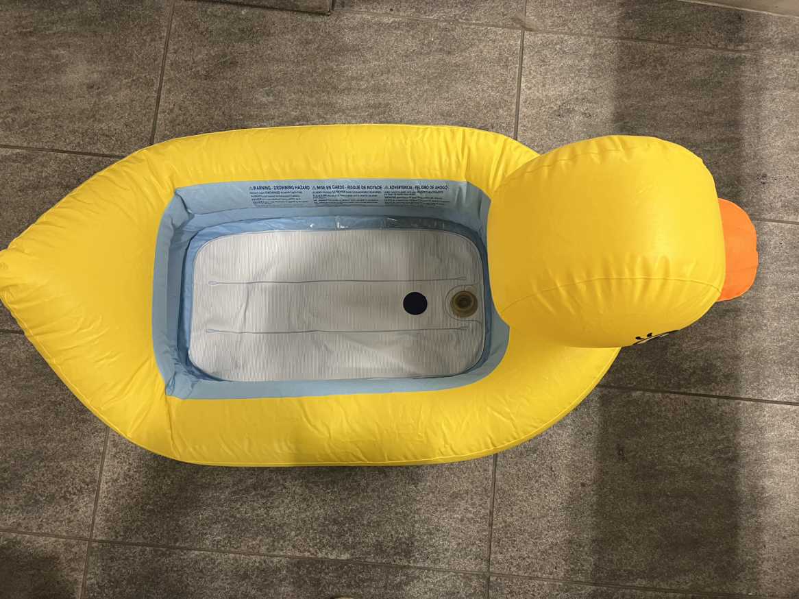 It’s perfect to put in a bathtub or outside on the lawn. Great for travel, deflates and folds easily Textured bottom so baby won't slip Ideal for babies between 6 to 24 months Pet free/ smoke free home