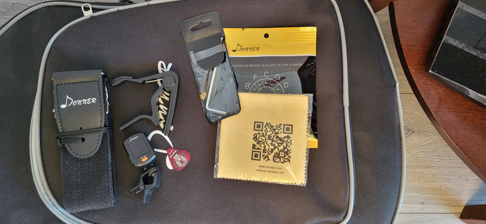 Comes with case, strap, digital tuner, extra pics and strings p/u in square one area
