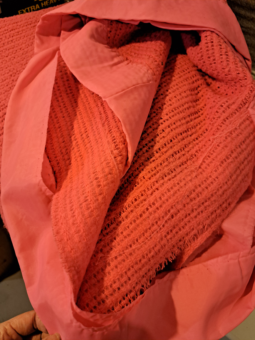 it's in good condition other than the satin edging that's coming off. need to be fully taken off or sewed back on properly.
