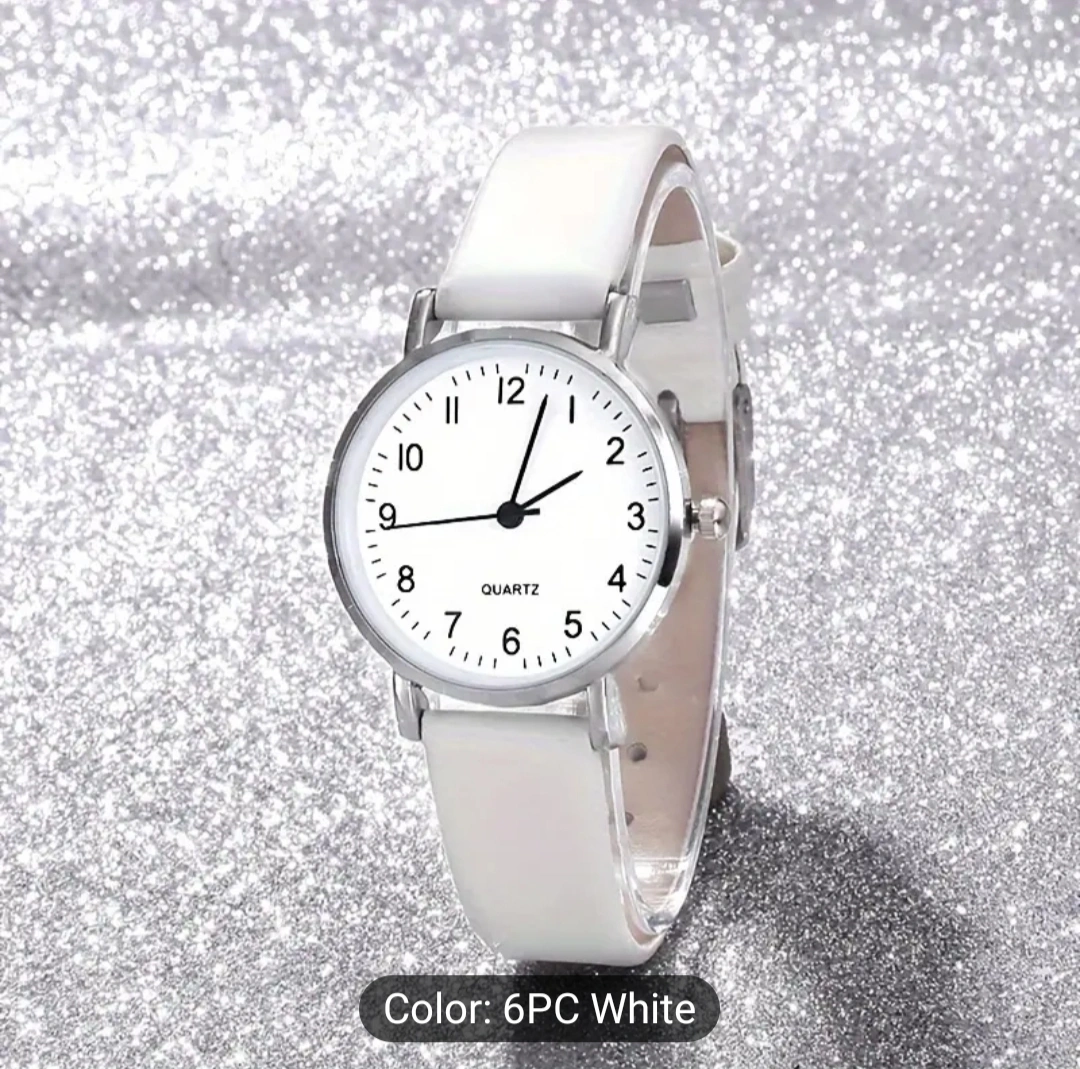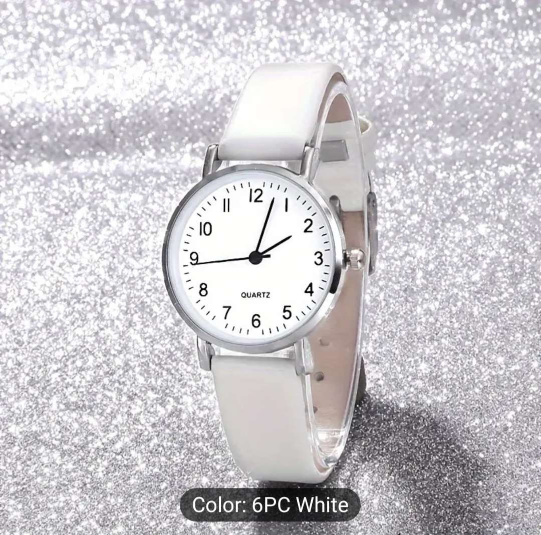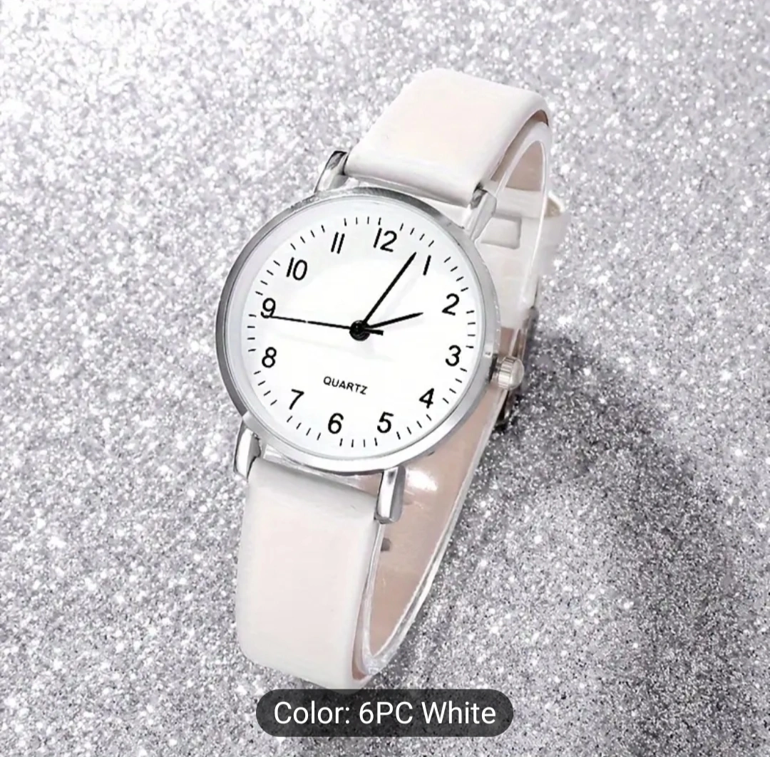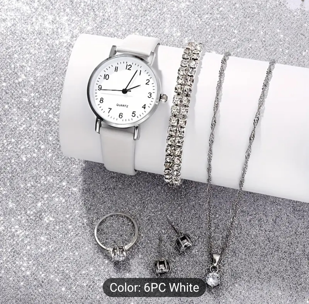 6 PC's/Set Women's Watch Casual Round Pointer Quartz Watch Analog PU Leather Wrist Watch & Jewellery Set It's Brand new but without box Pick up Only